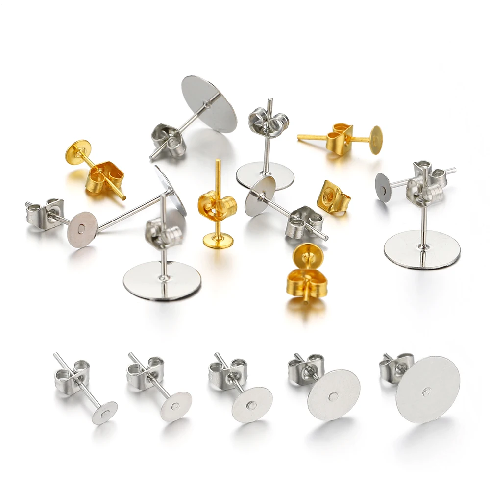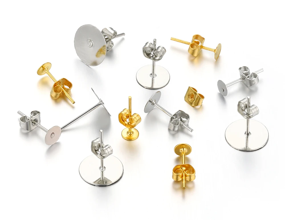 Основа для сережек-гвоздиков, с задней крышкой, для изготовления украшений, 100 шт.