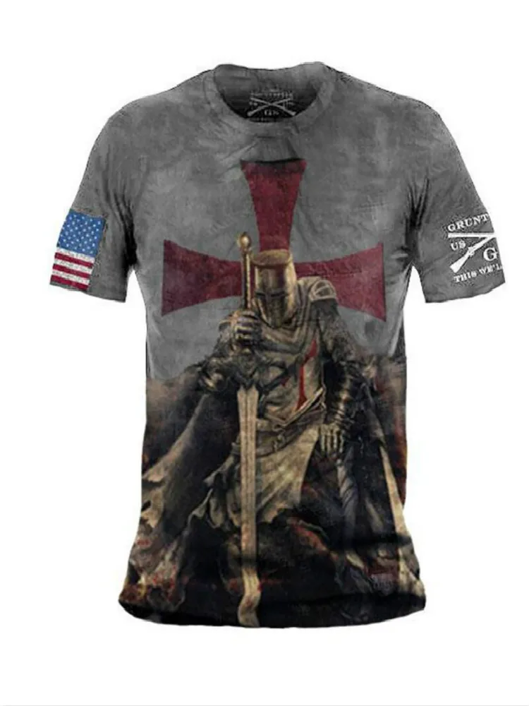 Мужская футболка с 3D-принтом Templar, летние топы с перекрестным р...