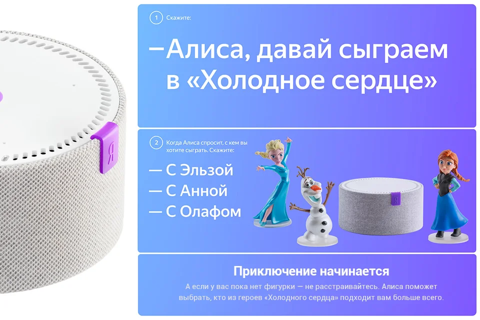 В комплекте уже есть все необходимое для игры-фигурки героев и Яндекс. Станция мини, в которой живет Алиса.