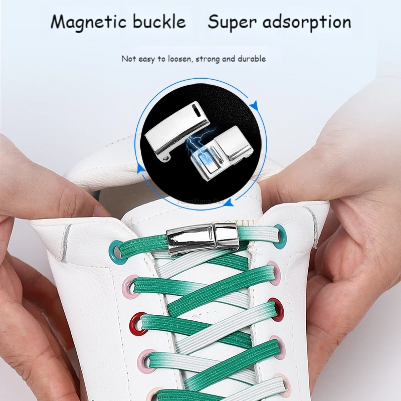 Эластичные шнурки для кроссовок Colorblock с магнитным замком, для детей и взрослых, для ленивых, без завязывания, универсальные