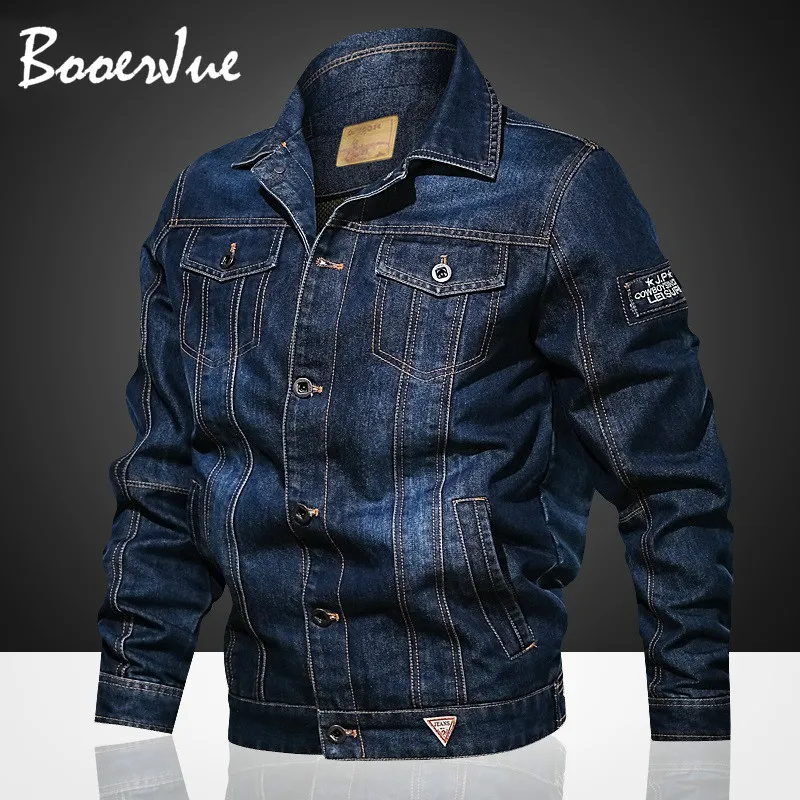 Куртка-бомбер мужская джинсовая, в стиле милитари, размера плюс, 6XL
