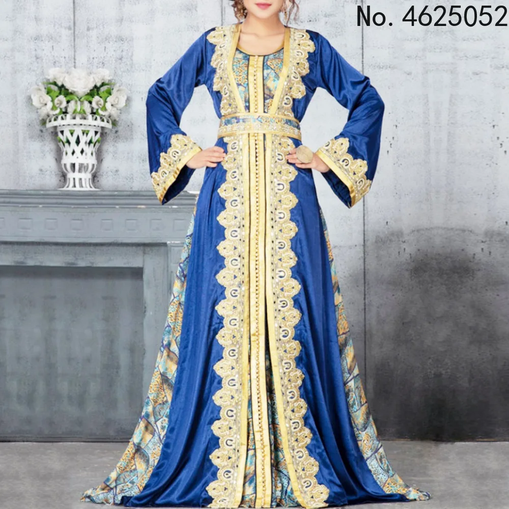 Марокканское Caftan Дубай, Турция мусульманское платье женская синяя абайя элегантная женская мусульманская одежда Jelaba 2021 Eid Mubarak Djellaba Femme