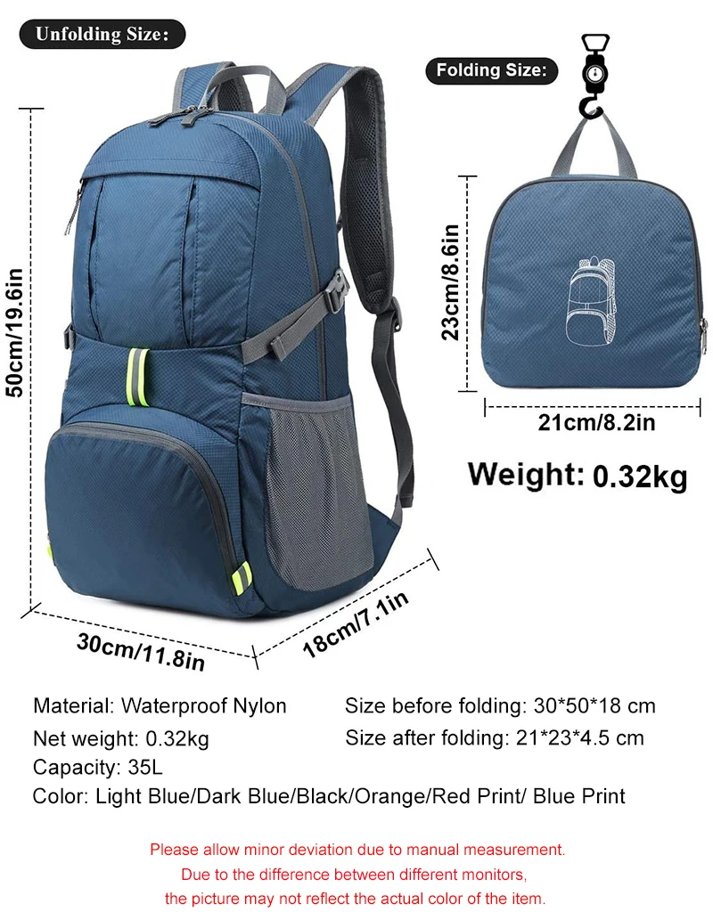 Складной дорожный альпинистский рюкзак 35 л, светильник рюкзак, спортивная сумка, рюкзаки для охоты, кемпинга, Путешествий, Походов