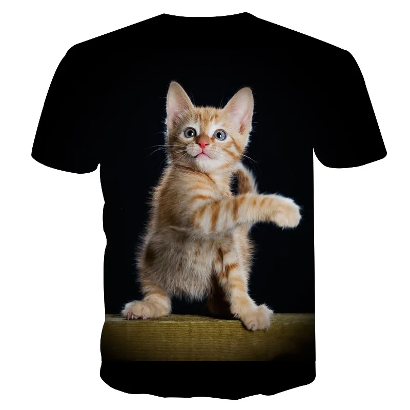 Модная черная, белая футболка с котом, женские и мужские топы, забавная футболка с 3d принтом двух кошек, женская летняя повседневная футболка с графическим принтом животных