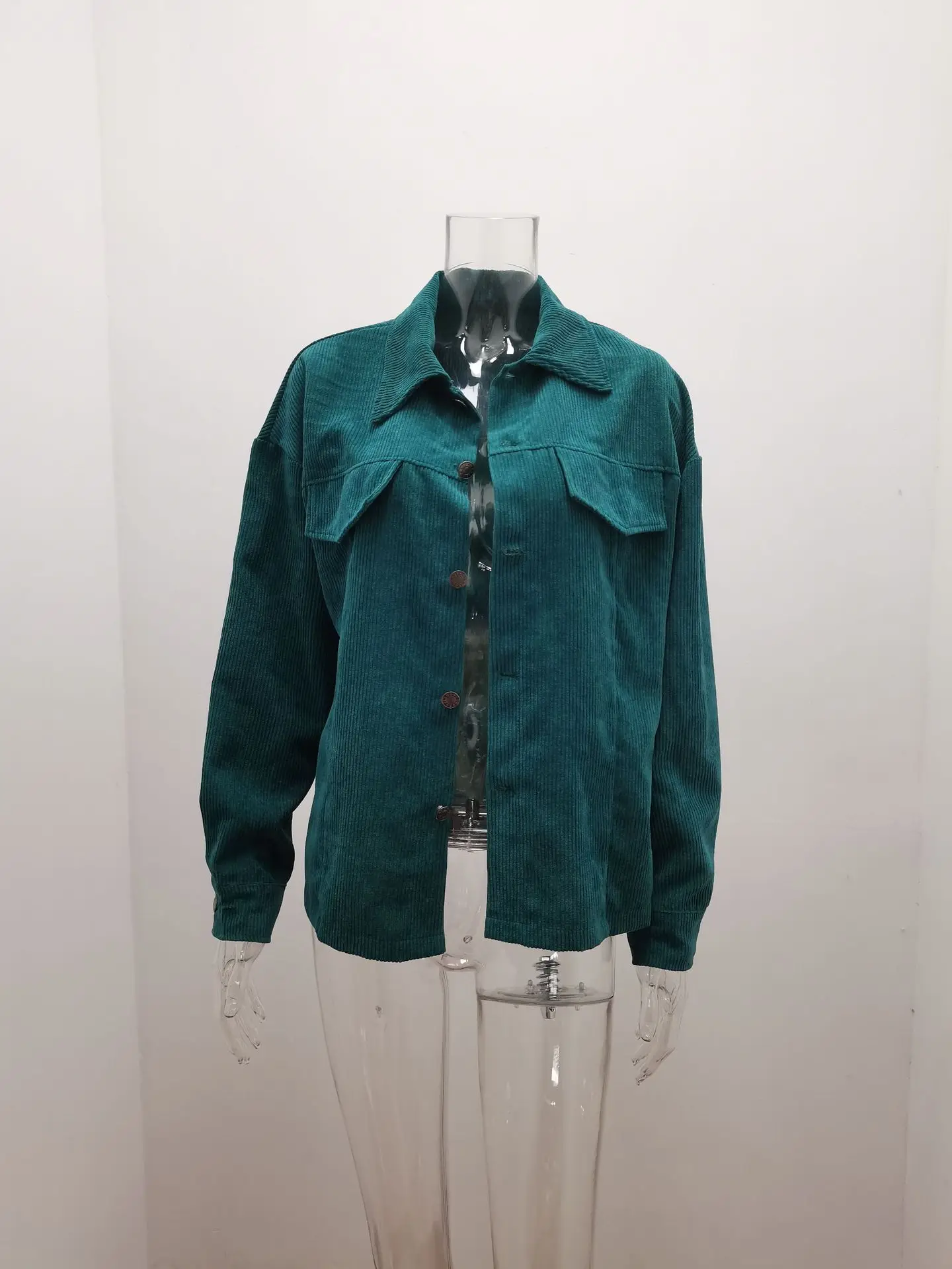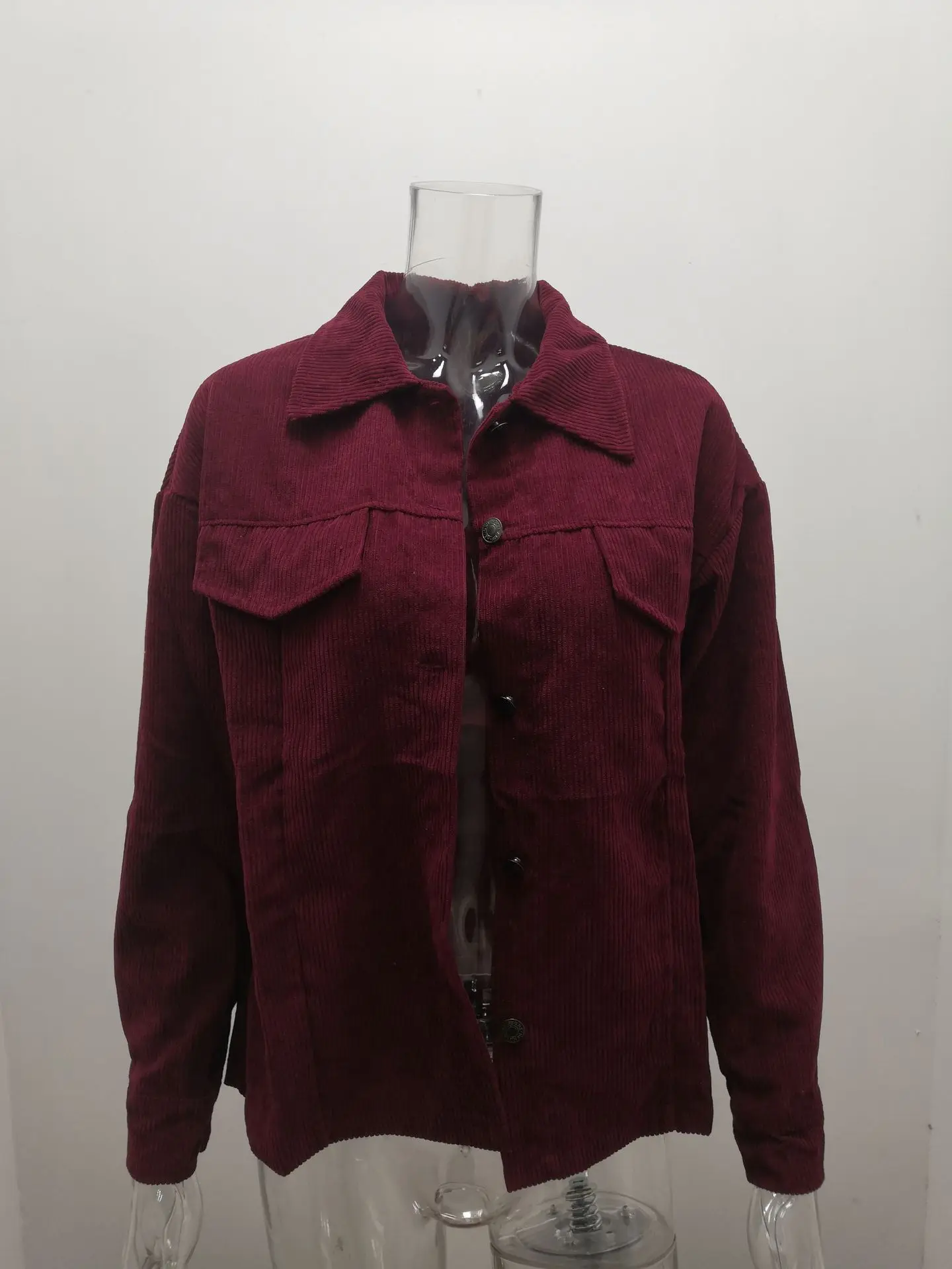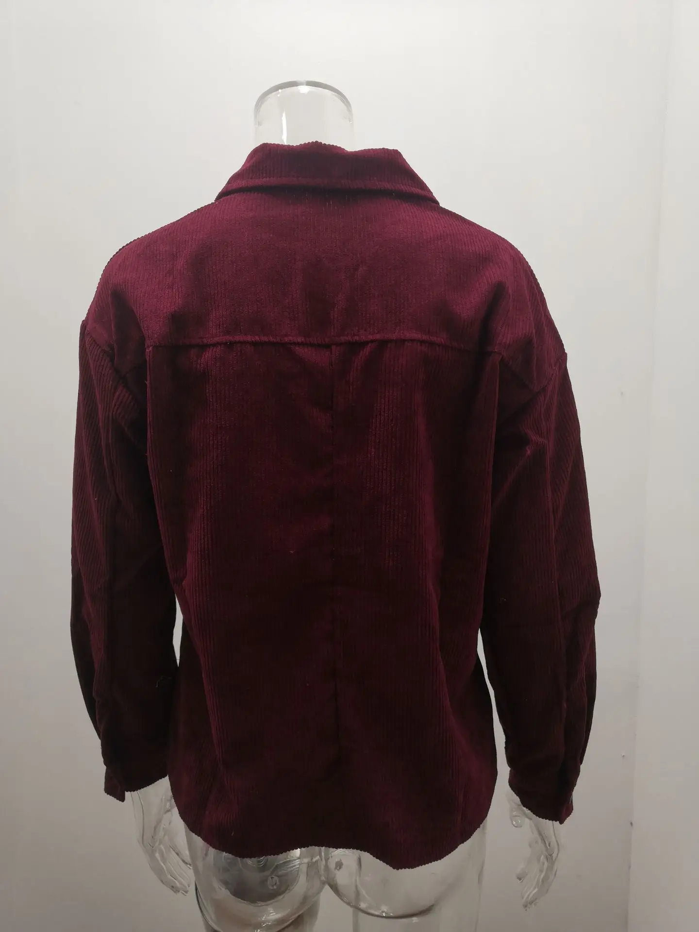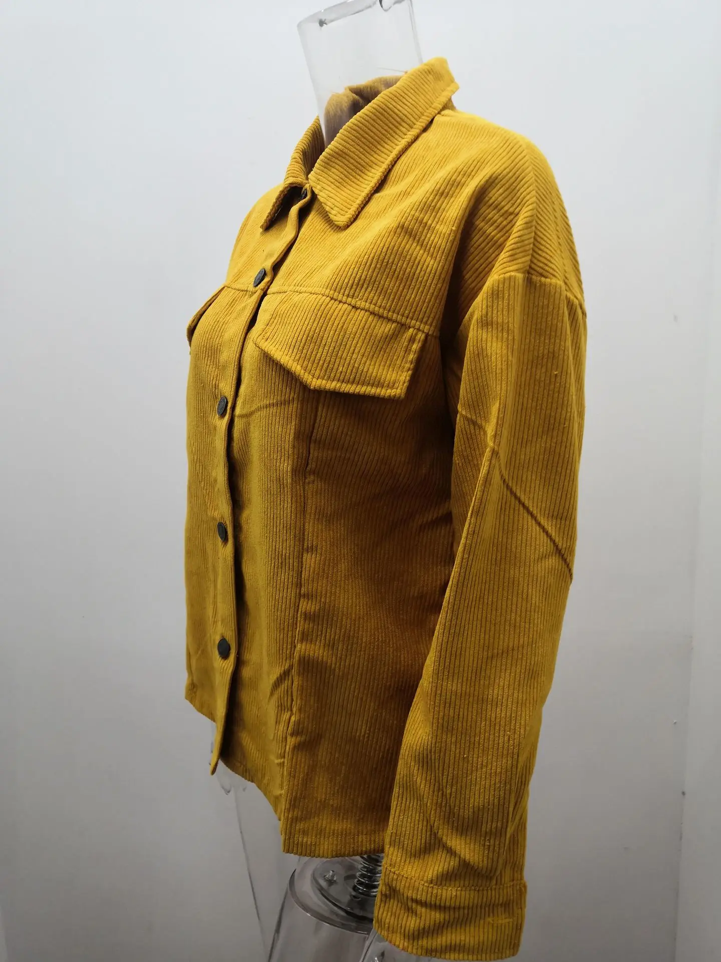 Женская Вельветовая куртка на пуговицах, однотонная черная, зеленая, красная, желтая куртка с длинным рукавом, модель 2021 на осень, 2021