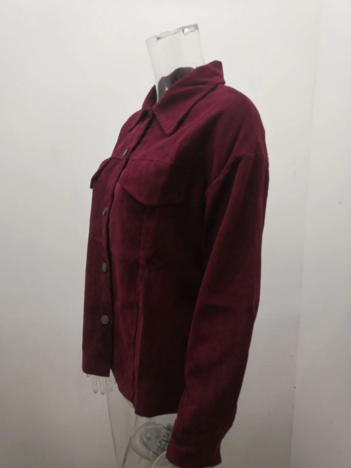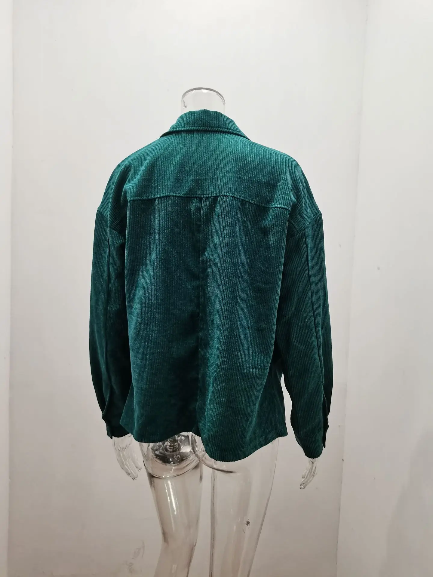 Женская Вельветовая куртка с длинным рукавом и отложным воротником