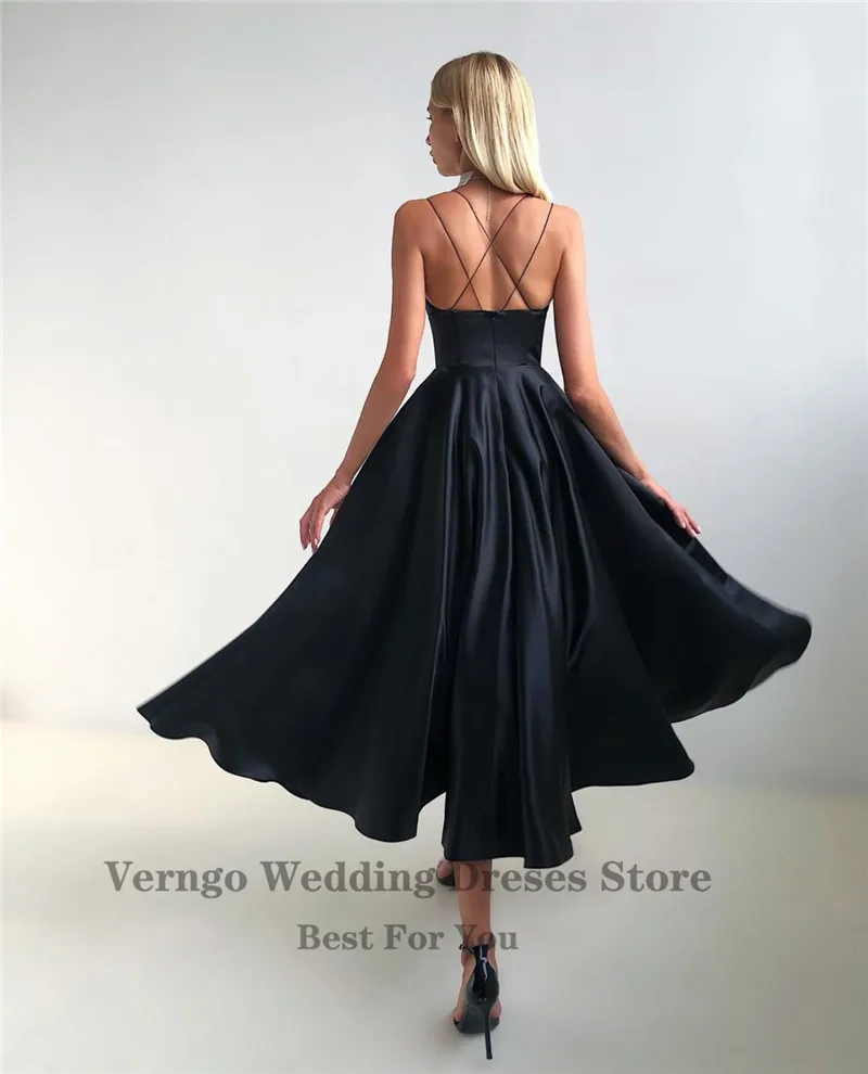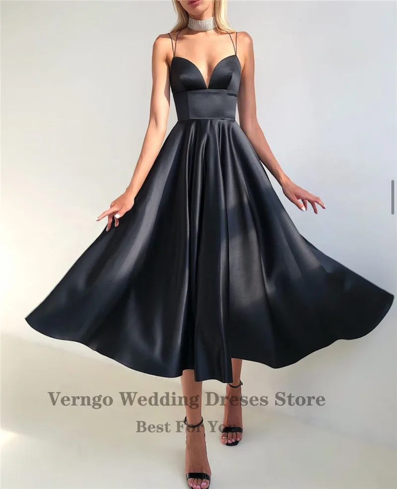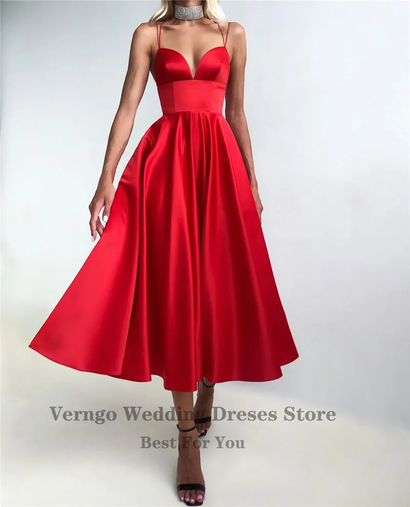 Простые красныечерные атласные вечерние платья Verngo трапециевидной формы, строгие платья длиной ниже колена на тонких бретельках для выпускного вечера, индивидуальный пошив