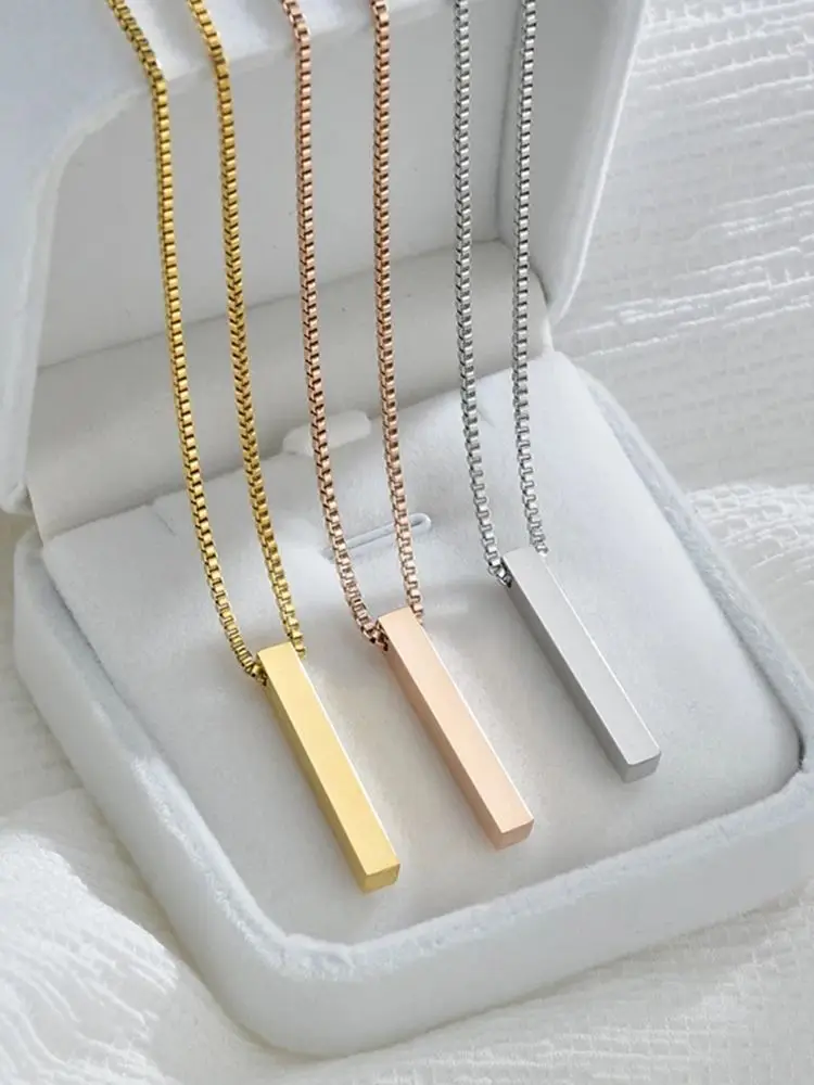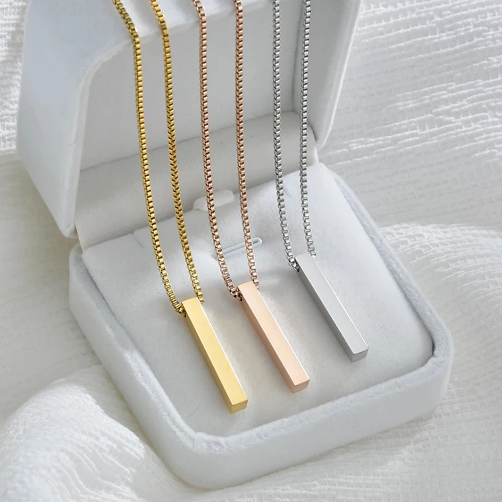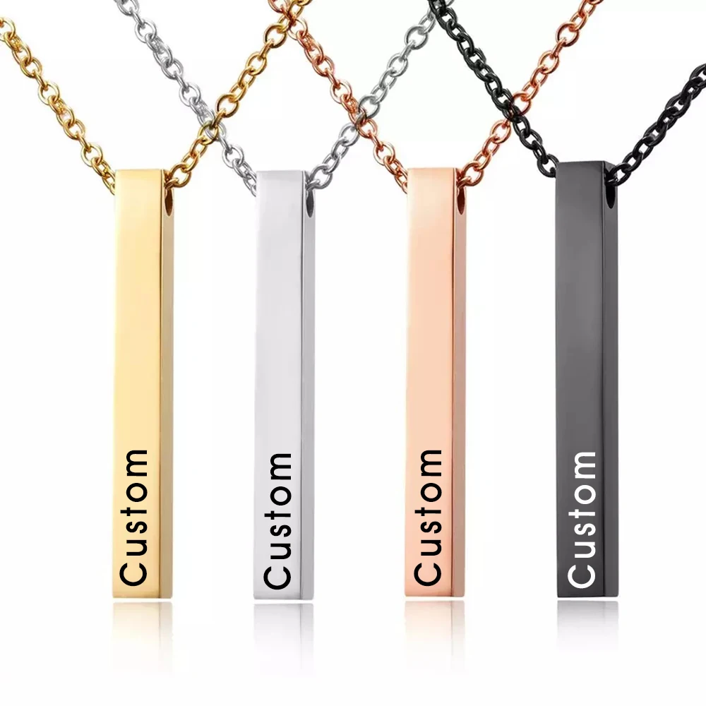 Модное геометрическое ожерелье из нержавеющей стали с гравировкой по 4 Сторонам с названием на заказ для женщин и мужчин, индивидуальное ожерелье с квадратным баром, креативный подарок
