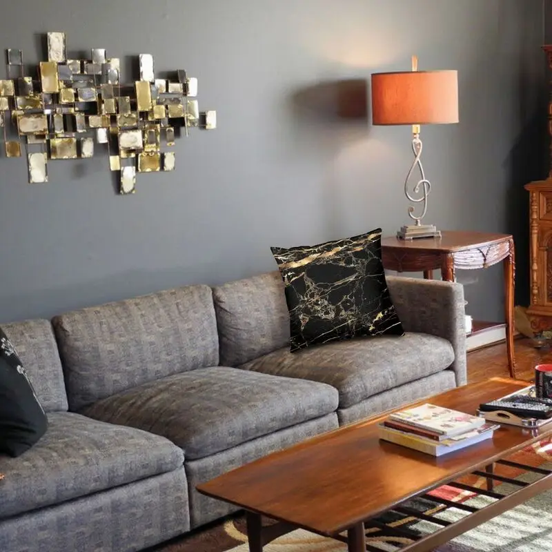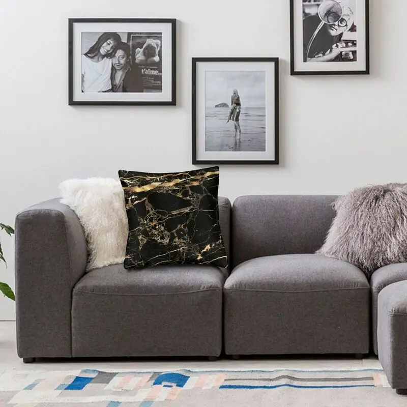 Черная мраморная Золотая наволочка с венами, наволочка для дивана, Современная квадратная наволочка с геометрическим рисунком для гостиной, 45x45