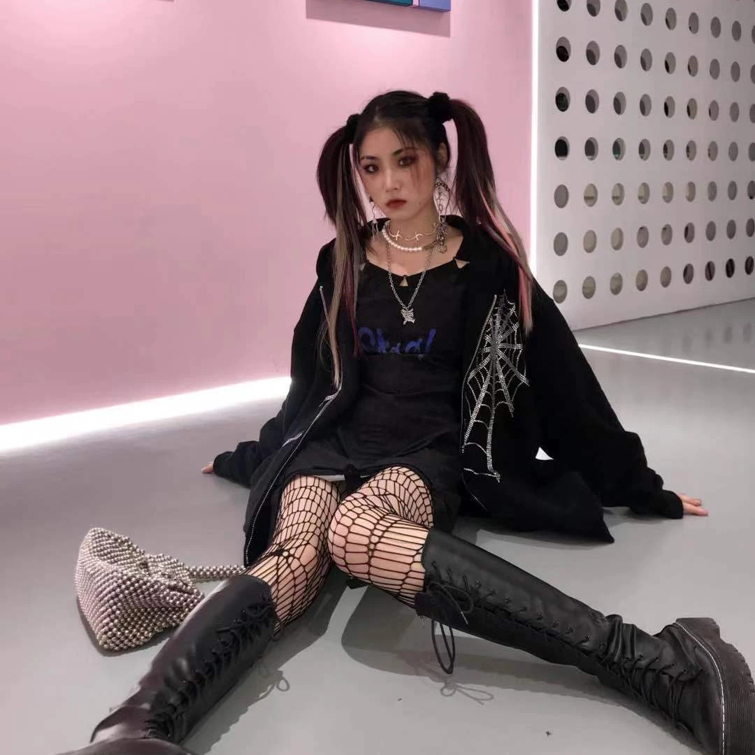 Уличная одежда InsGoth Y2K с рисунком паука в стиле Харадзюку, худи...