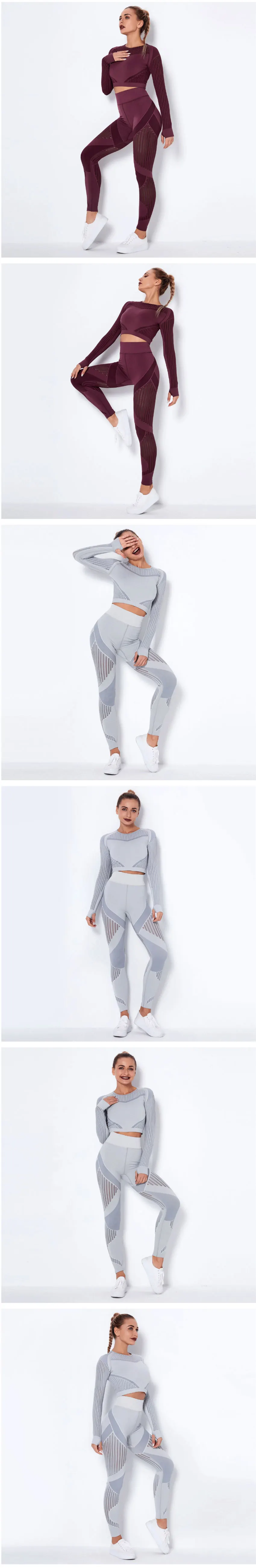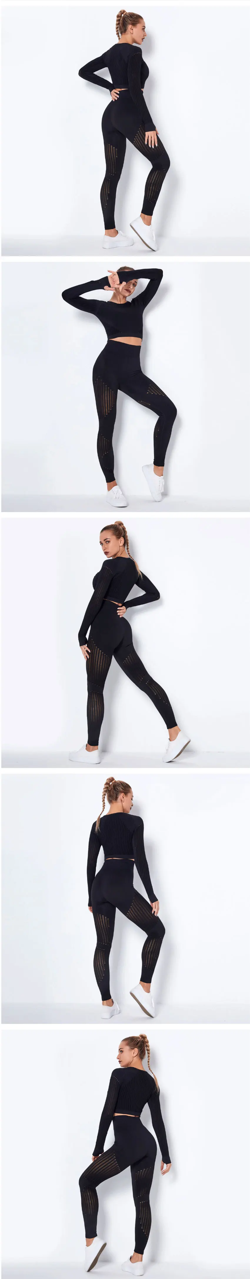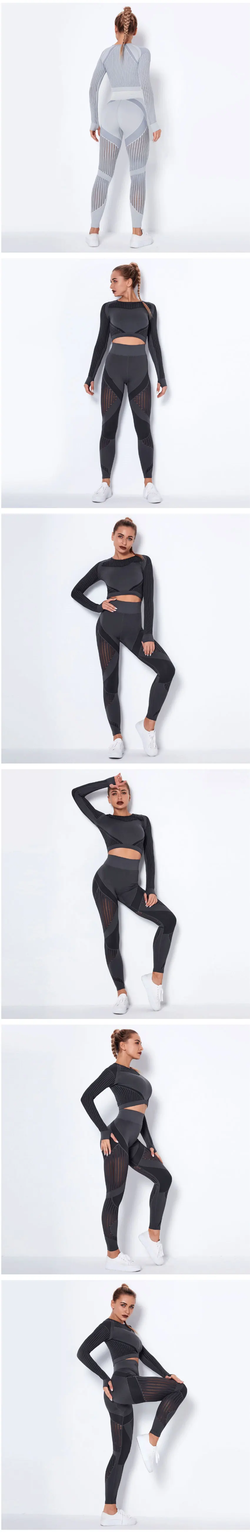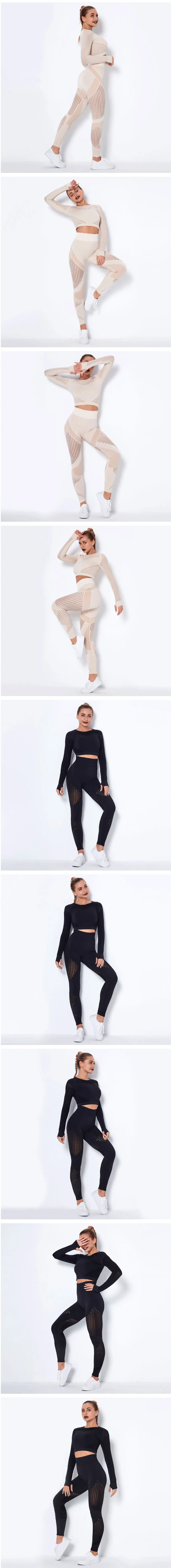 Бесшовный комплект для йоги, спортивные наряды, женский черный комплект из двух предметов, короткий топ, бюстгальтер, леггинсы, тренировочный костюм, спортивные комплекты для фитнеса