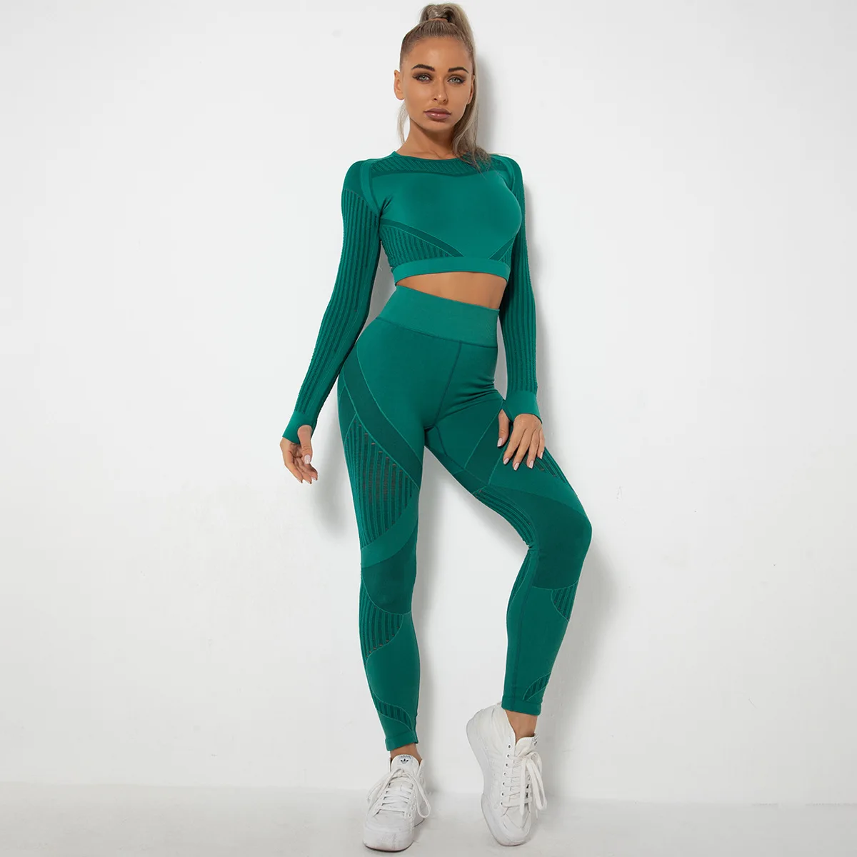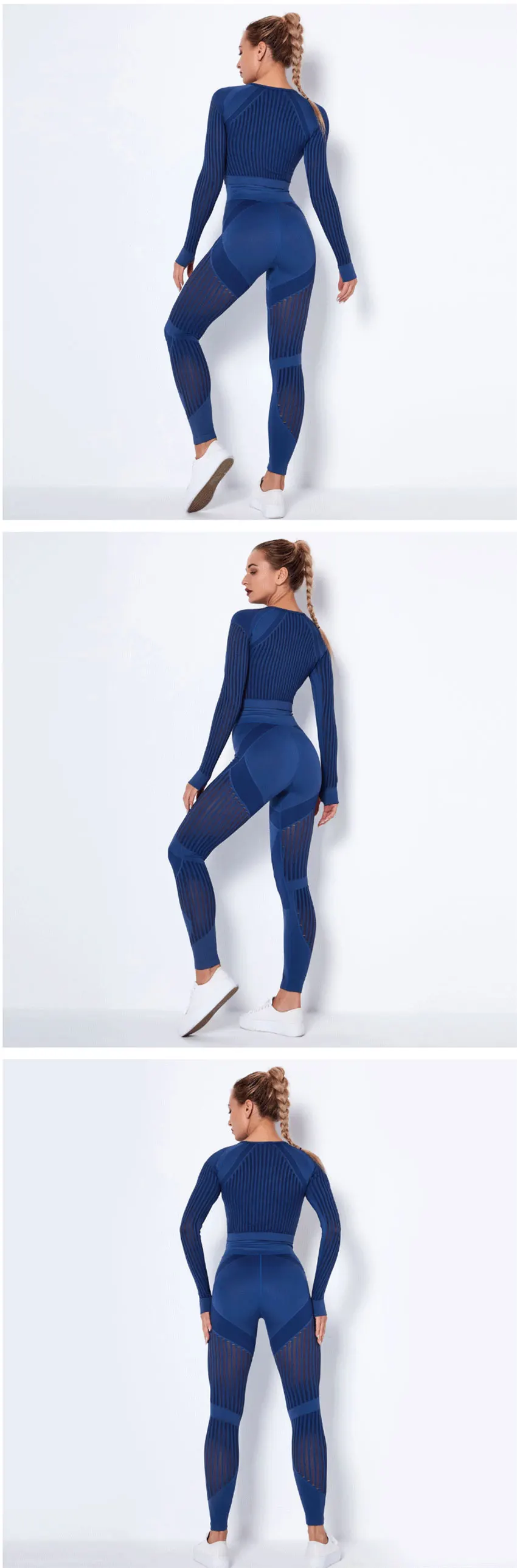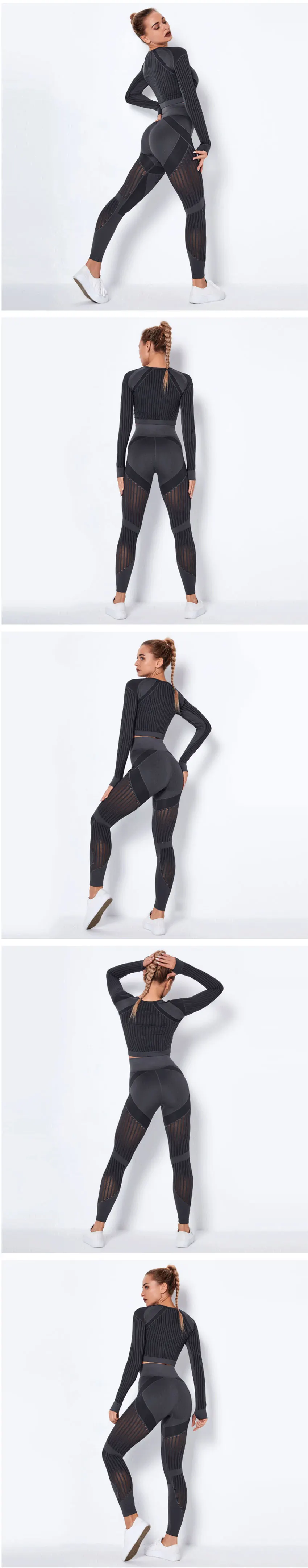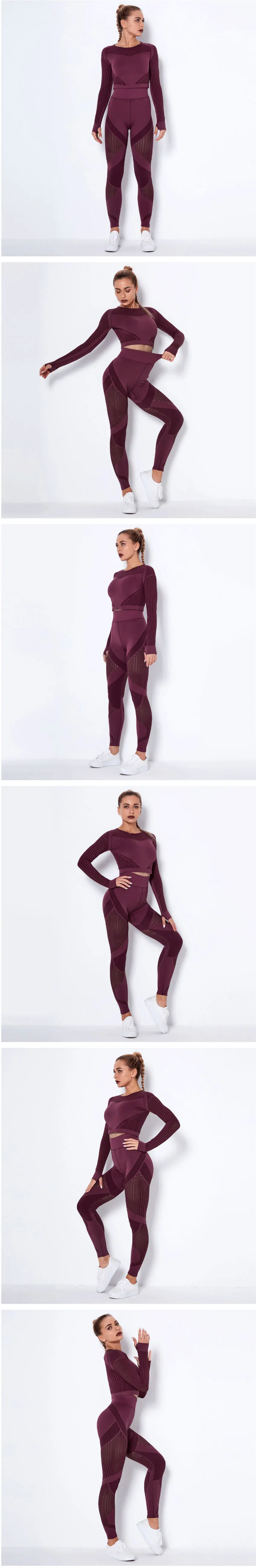 Бесшовный комплект для йоги, спортивные наряды, женский черный комплект из двух предметов, короткий топ, бюстгальтер, леггинсы, тренировочный костюм, спортивные комплекты для фитнеса