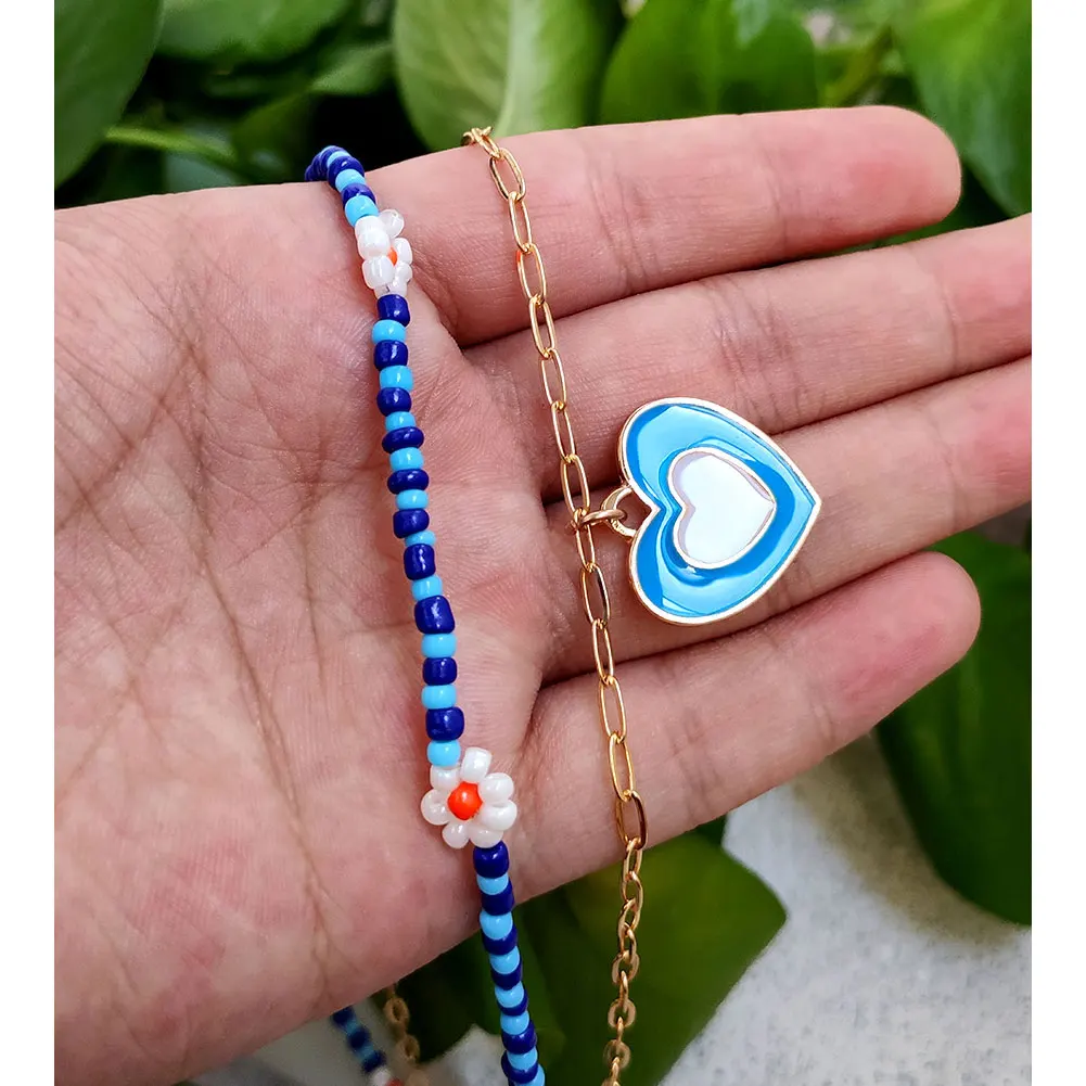 Модное многослойное ожерелье с подвеской в виде синего цветка из би...