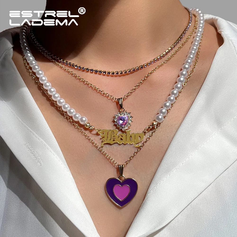 Женское колье с подвеской Flatfoosie, многослойное ожерелье с жемчу...