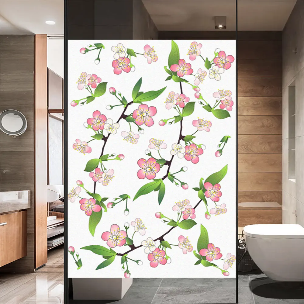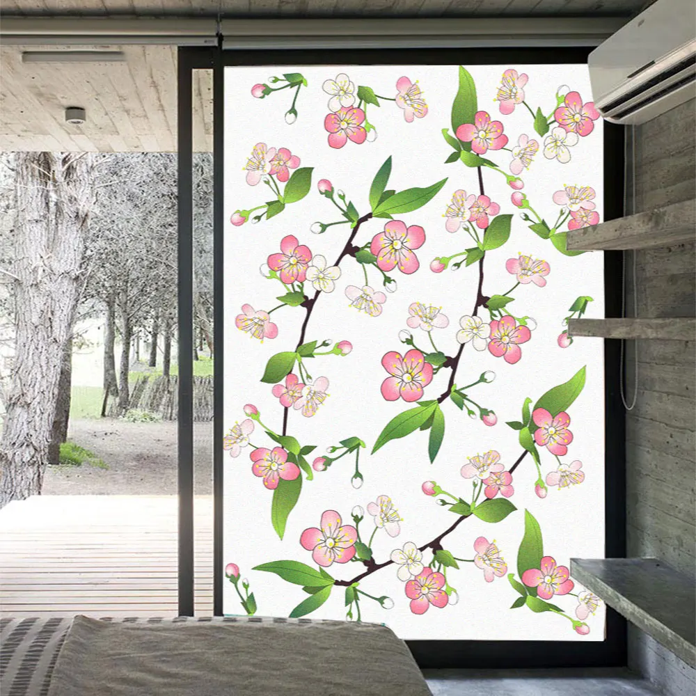 Оконная пленка с цветочным узором, матовая наклейка без клея для стекла, защита от солнца, термоконтроль, Оконные покрытия для домашнего декора