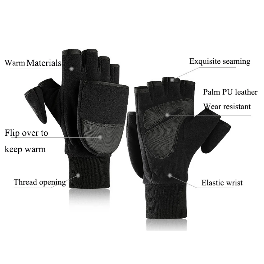 Зимний флип-чехол, черные рыболовные перчатки, Нескользящая дышащая...