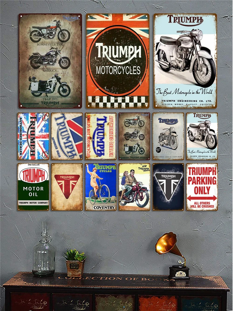 Металлическая табличка Triumph для гаража, винтажный настенный плак...