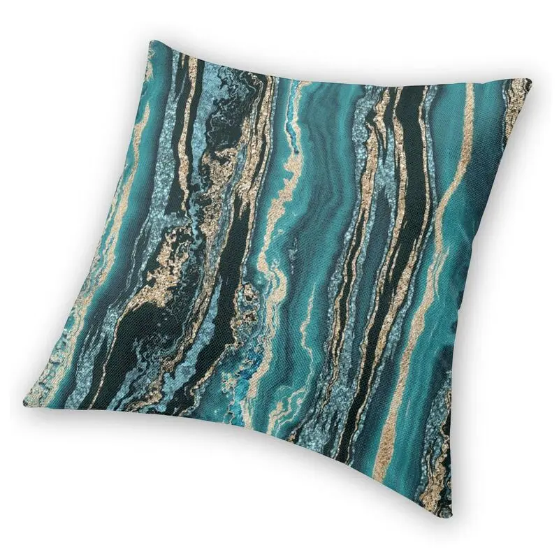 Наволочка для подушки, украшение для дома с бирюзовым и золотым мра...