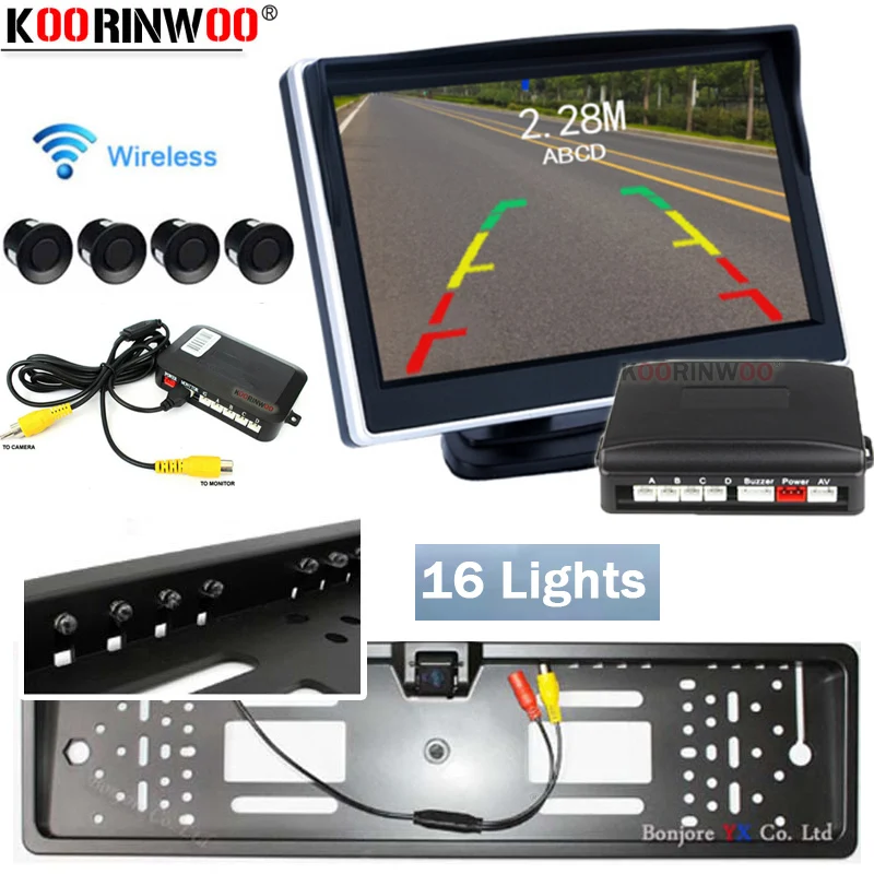 Koorinwoo рамка для лицензии ЕС для автомобилей парктроники 16 светодиосветодиодный электромагнитный датчик парковки автомобиля монитор камера заднего вида шаговый зуммер 12 В