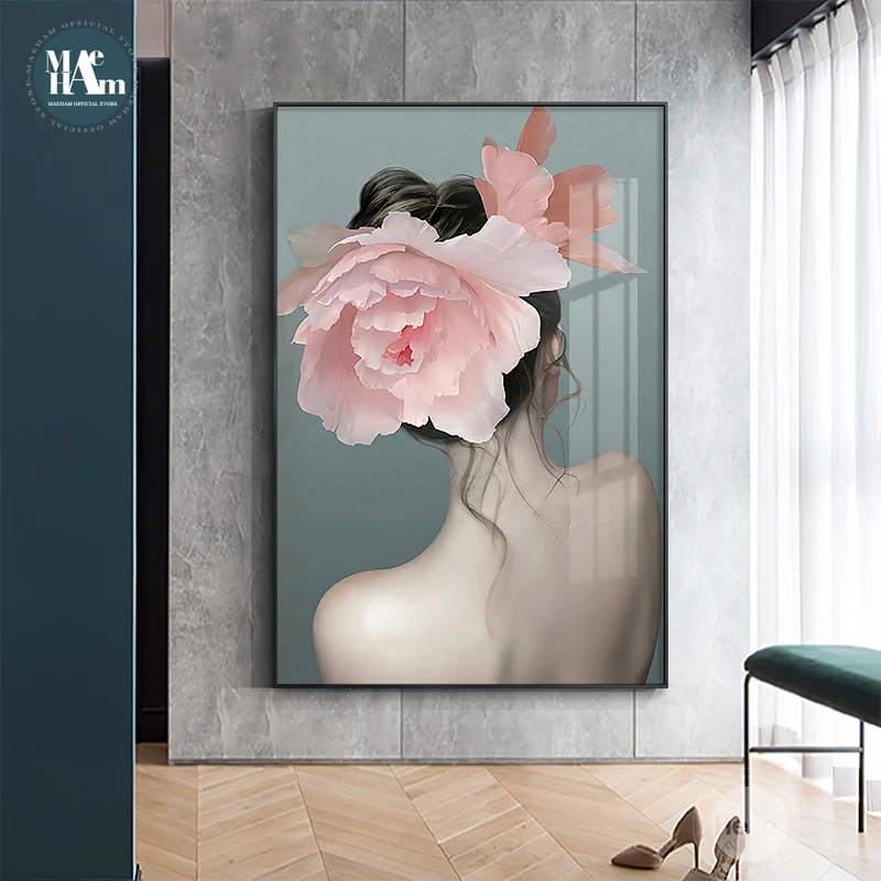 Скандинавская Настенная картина с изображением цветов бабочки девушки, постеры и принты на холсте, картина для гостиной, украшение для дома