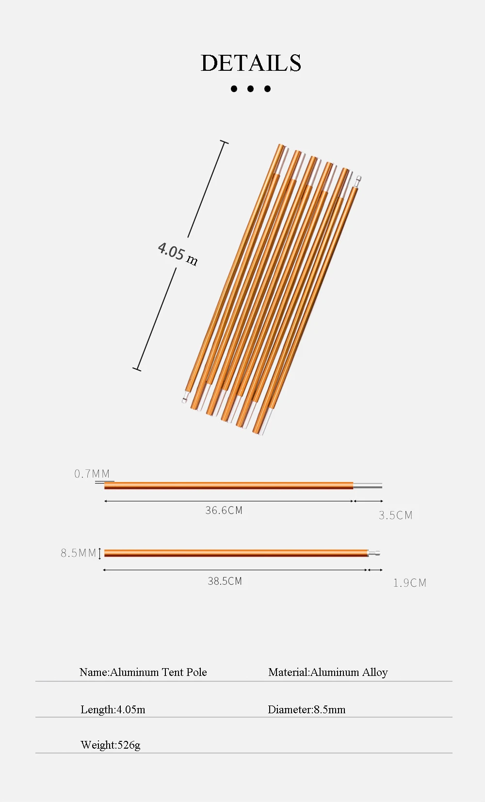 Уличное кемпинговое оборудование, 2 шт.лот, 8,5 мм, 405 см, высокопрочная алюминиевая палатка, стержень из сплава, аксессуары для палатки на 4-8 человек