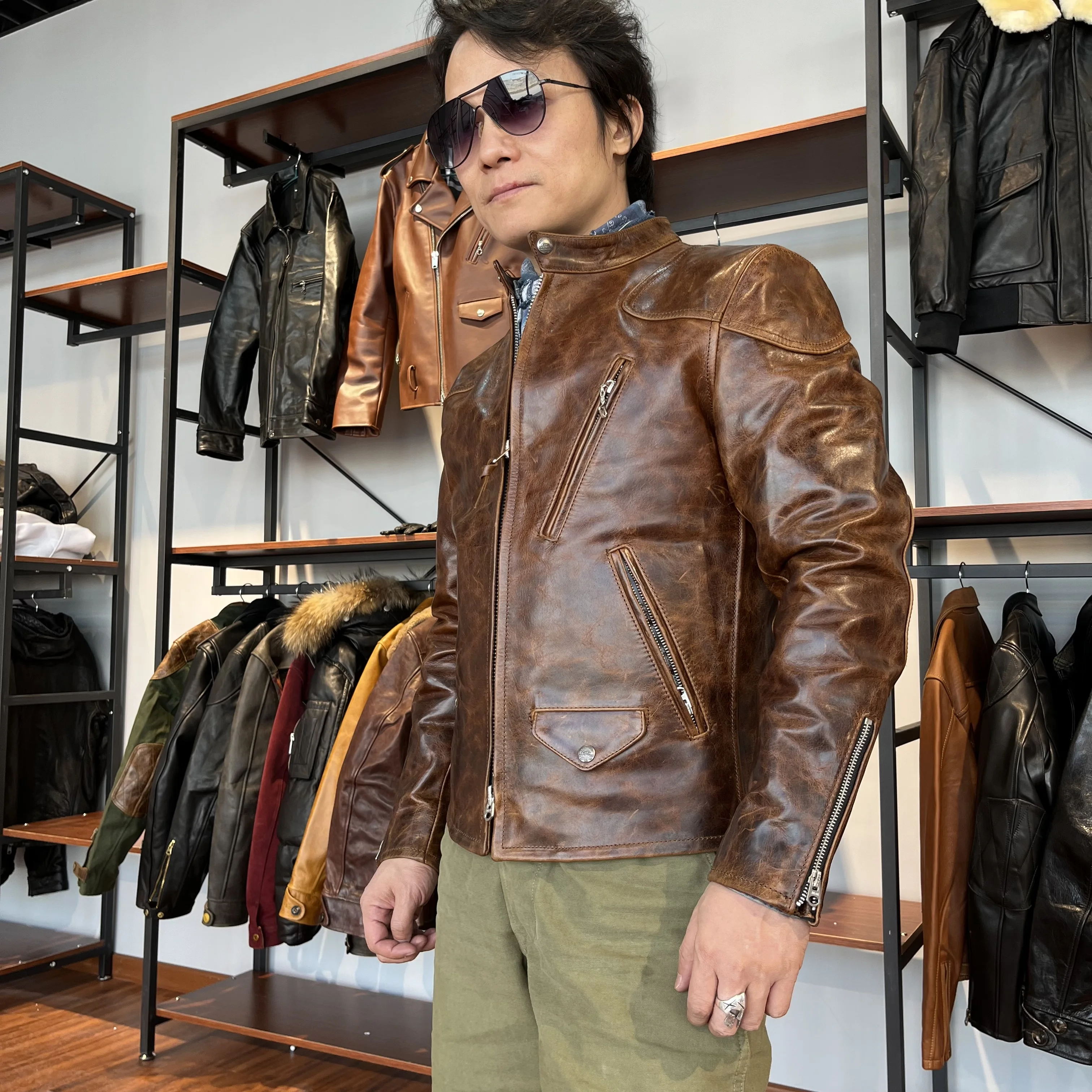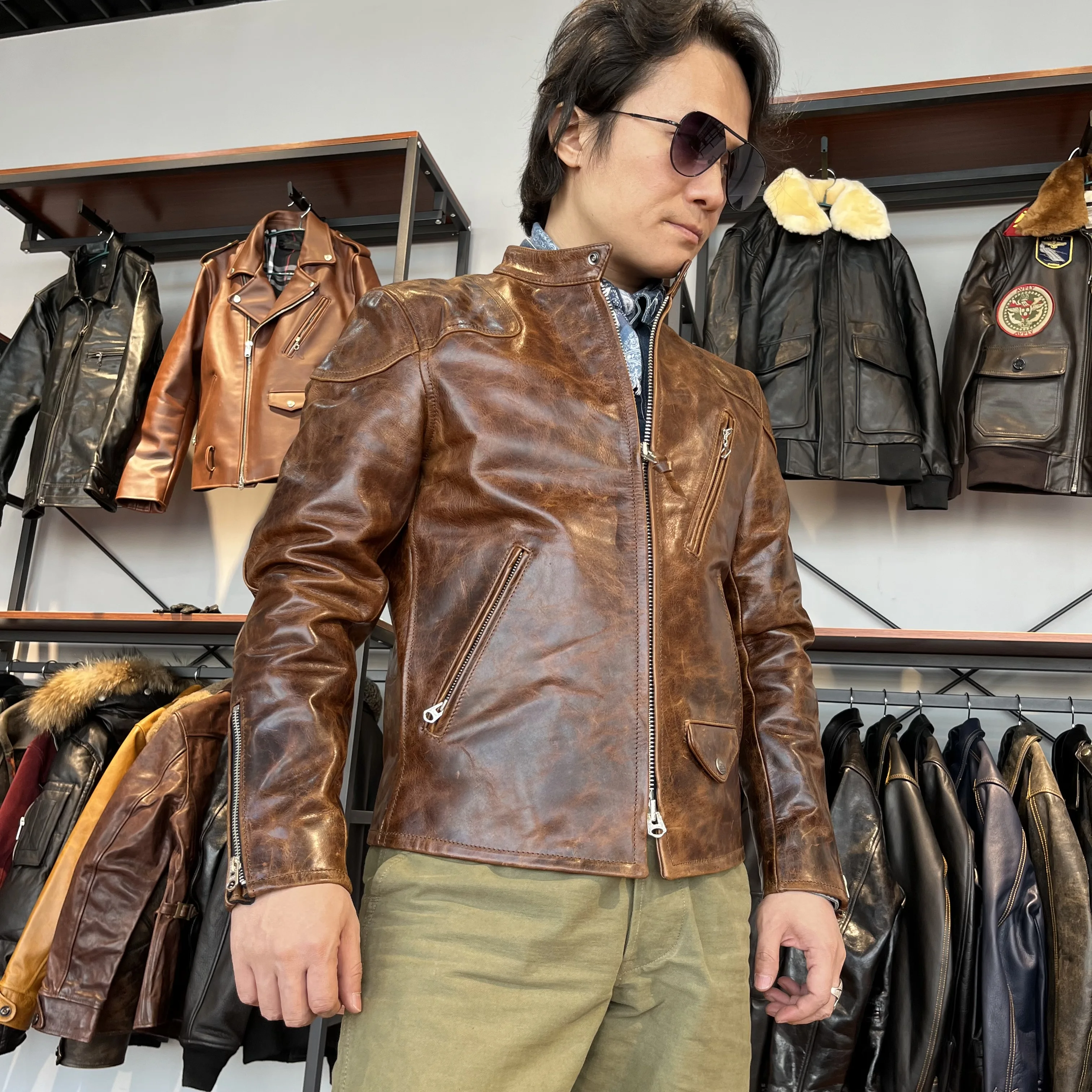 Стандартный размер, супер высокое качество, тяжелая натуральная итальянская коровья кожа, тонкая Классическая воловья кожа, стильная куртка