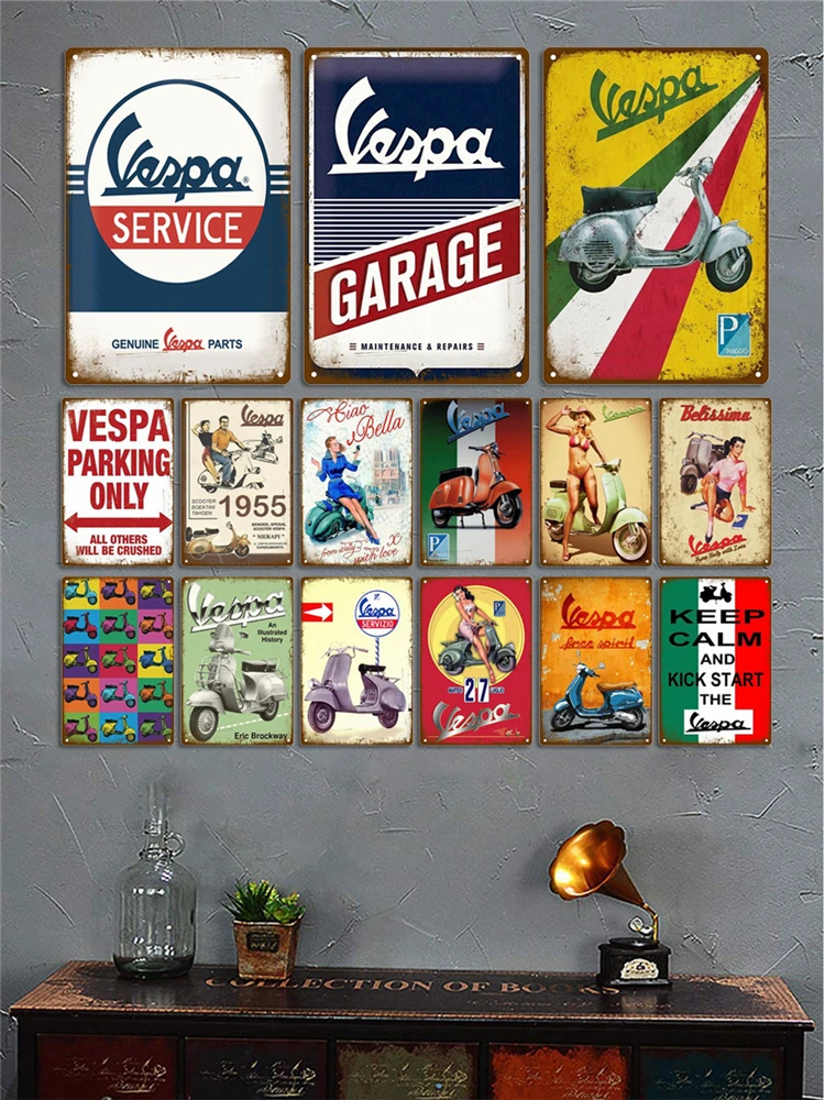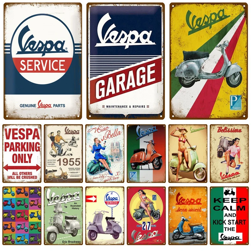 Металлический винтажный настенный плакат Vespa для гаража, винтажны...