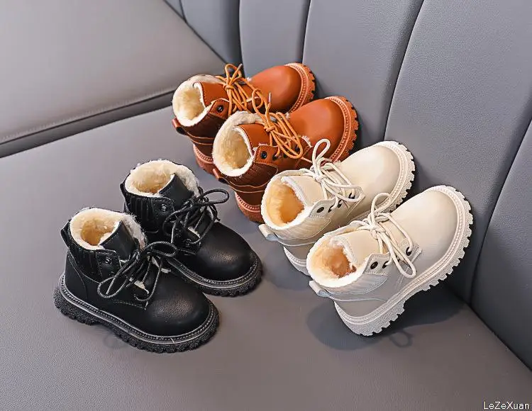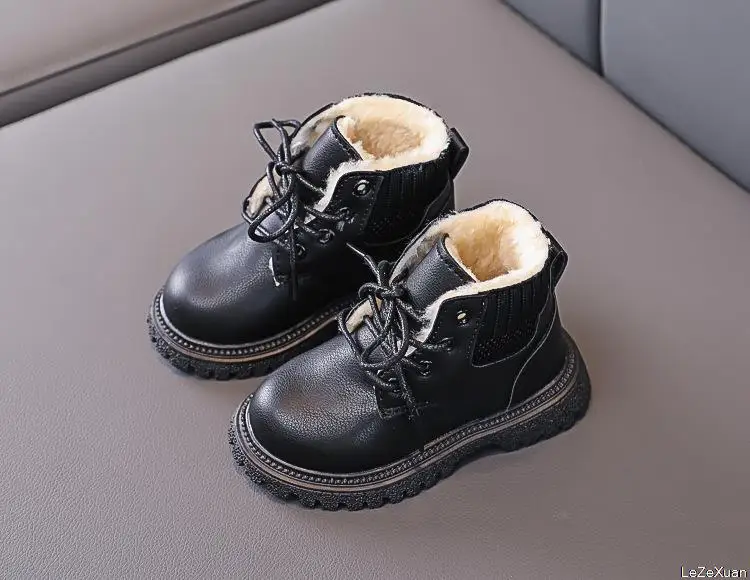 Зимняя детская кожаная обувь, зимние ботинки для мальчиков, плюшева...