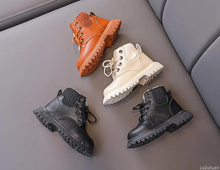 Ботинки детские осенне-зимние из хлопка, с плюшевой подкладкой