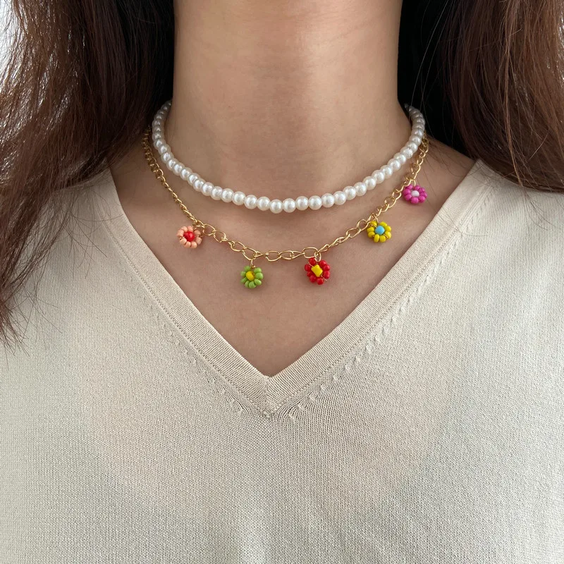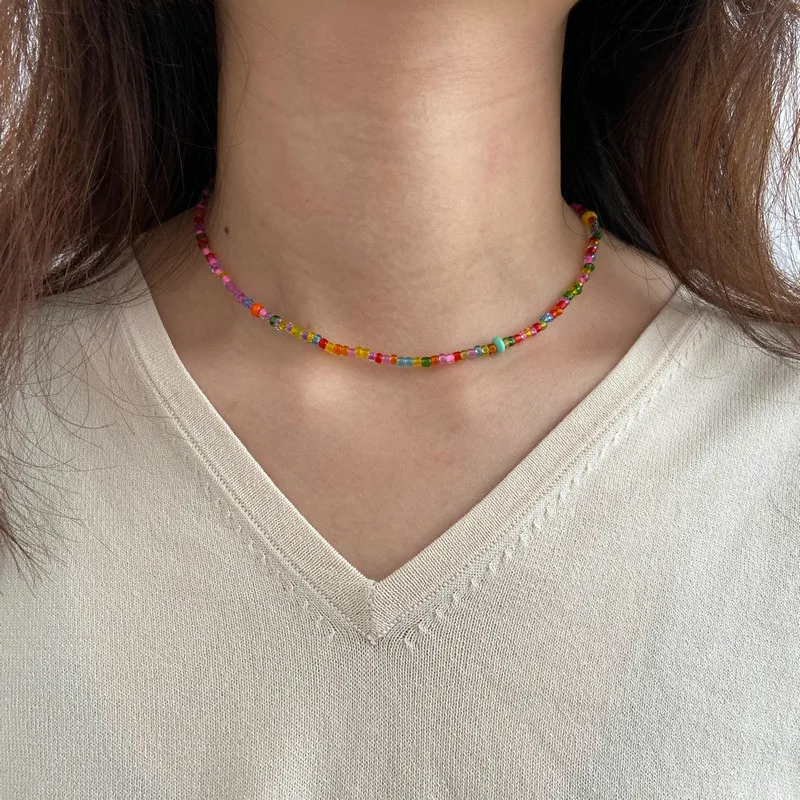 Женское Ожерелье-чокер с цветными бусинами, в Корейском стиле