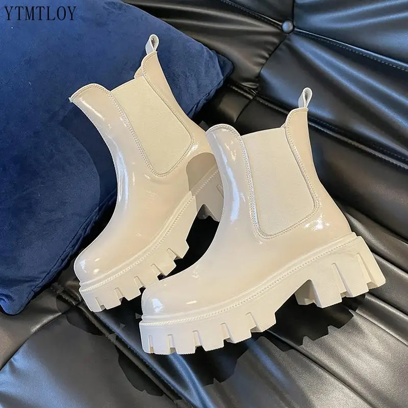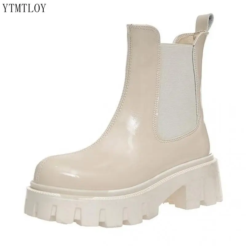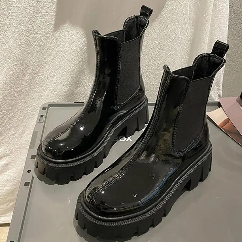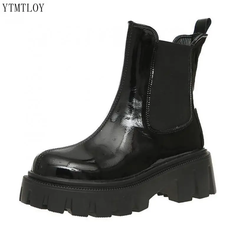 Женские ботильоны из лакированной кожи на толстой подошве, с круглым носком