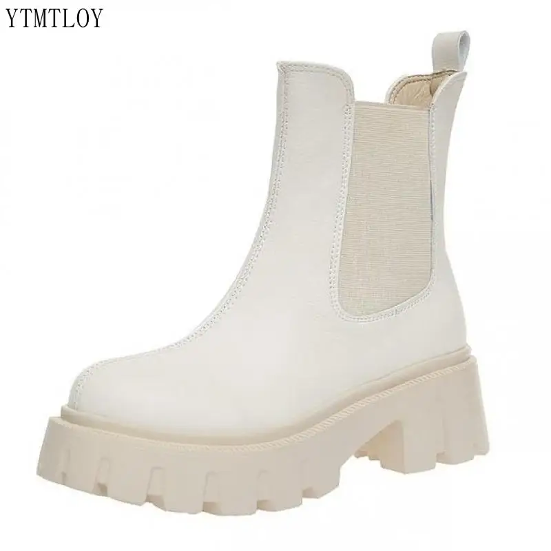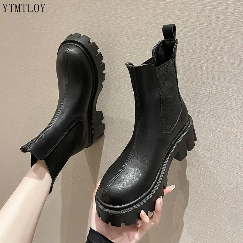 Женские ботинки челси на толстой подошве, боевые ботинки средней дл...