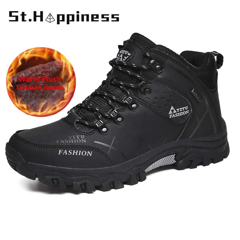 Теплые мужские ботинки, водонепроницаемые ботинки из кожзаменителя ...