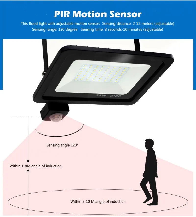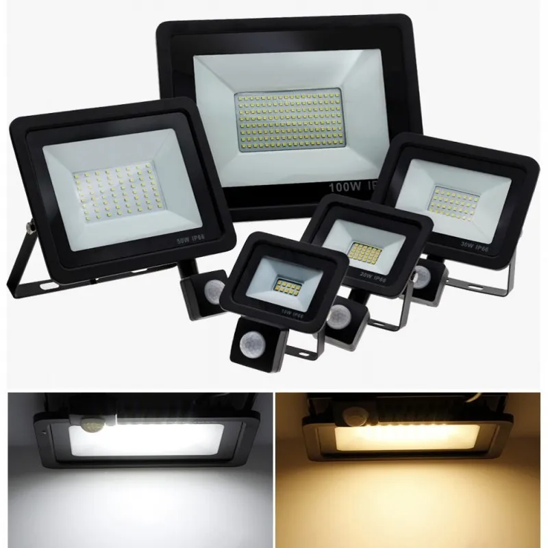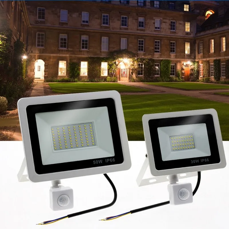 Светодиодный прожектор с пассивным ИК датчиком движения, 10 Вт, 20 Вт, 30 Вт, 50 Вт, 100 Вт, 220 В, водонепроницаемый Уличный настенный садовый светодиодный прожектор, отражатель, Foco Lamp
