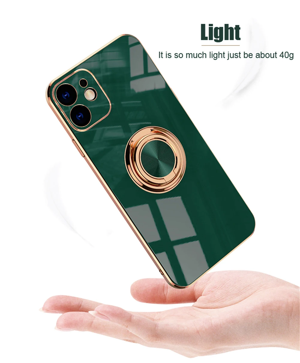 Multiple Model Selection 6For iPhone 12 13 Mini Square Plating Bumper Magnetic Ring Stand Case