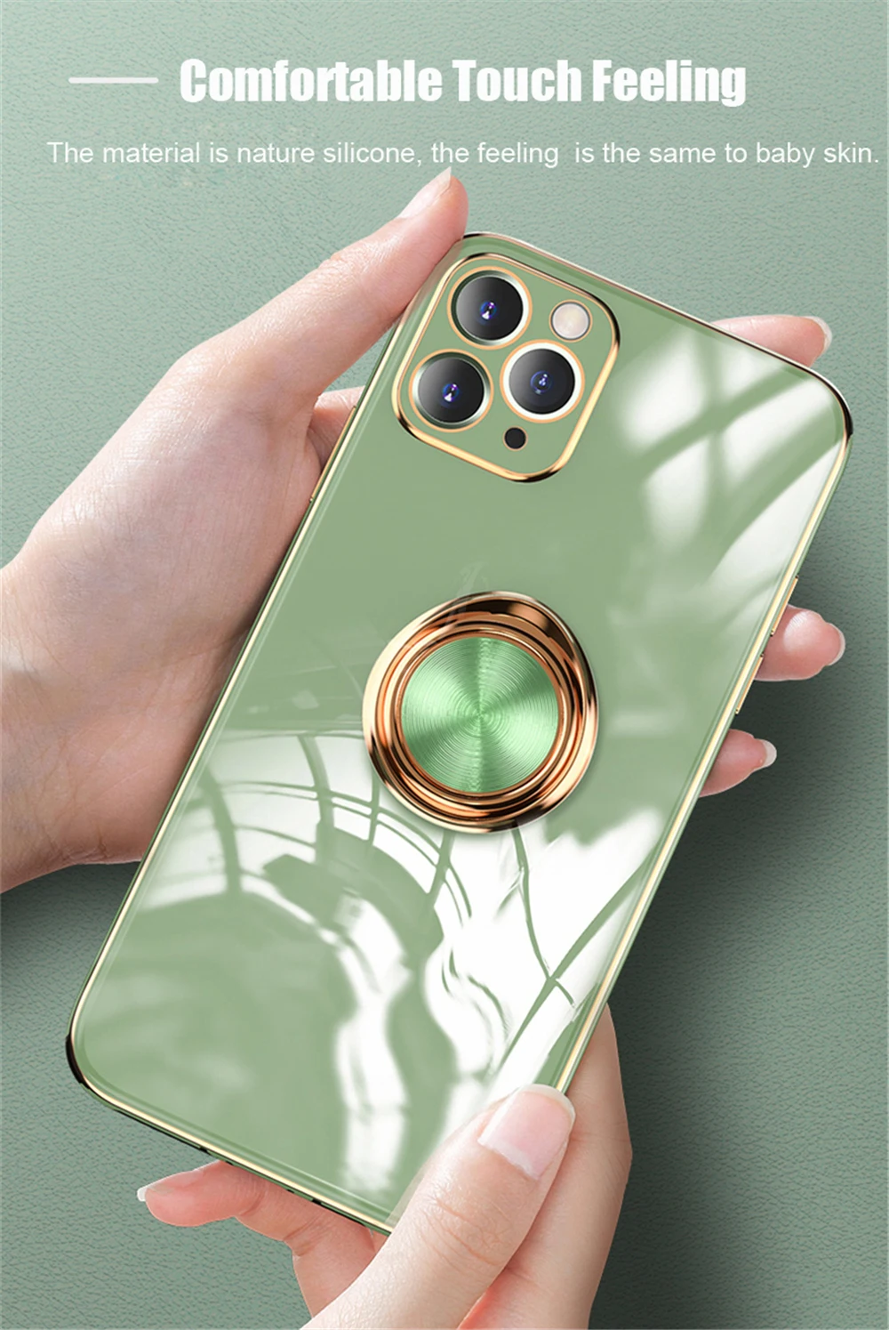 Позолоченный силиконовый Магнитный чехол для телефона iPhone 12 11 Pro Max X XR XS 7 8 Plus SE2 мягкий ударопрочный чехол-подставка с держателем кольца