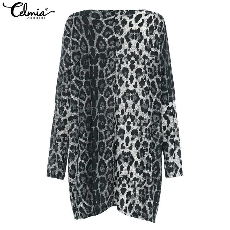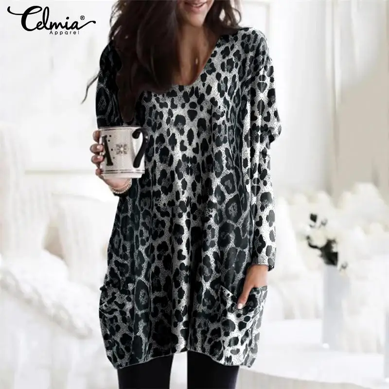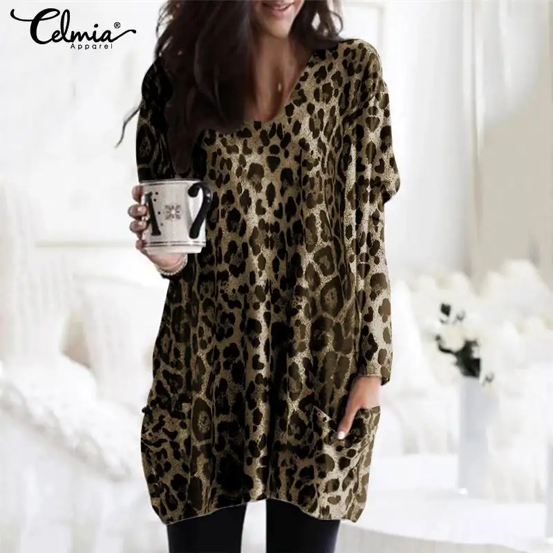 Celmia 2022 винтажные Топы с длинным рукавом, женские пикантные блузки с V-образным вырезом, Повседневная рубашка с карманами и леопардовым принтом, элегантные женские блузы