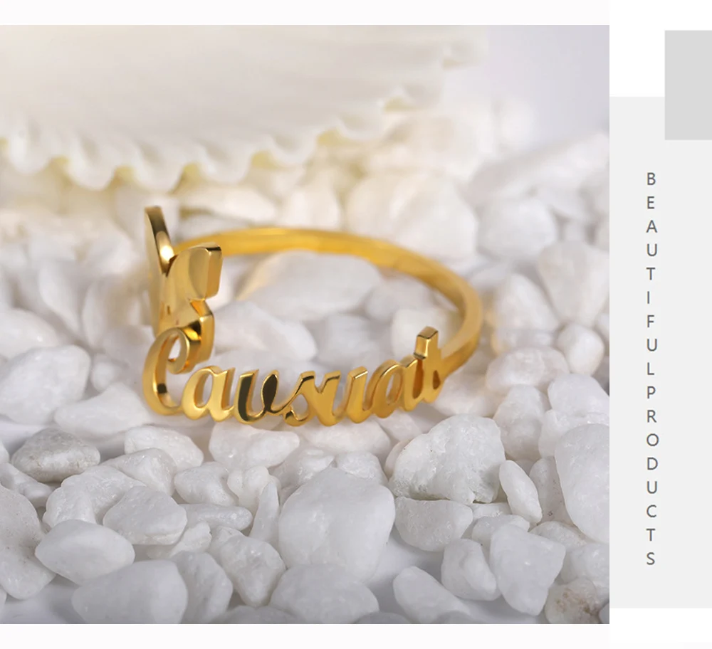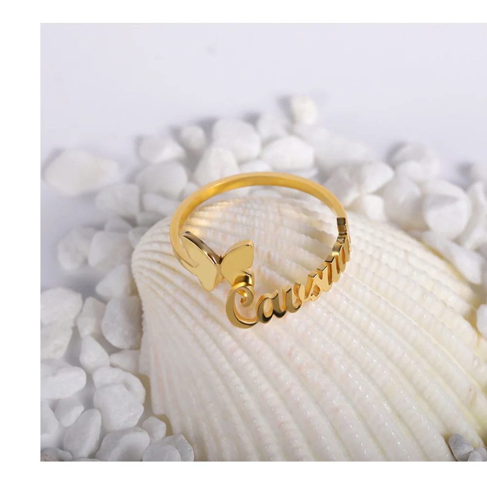 Индивидуальное именное кольцо с бабочкой, индивидуальное открытое регулируемое кольцо из нержавеющей стали, Женское кольцо для пары, ювелирное изделие, Подарок на годовщину