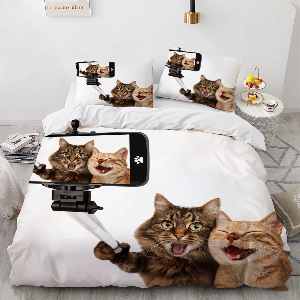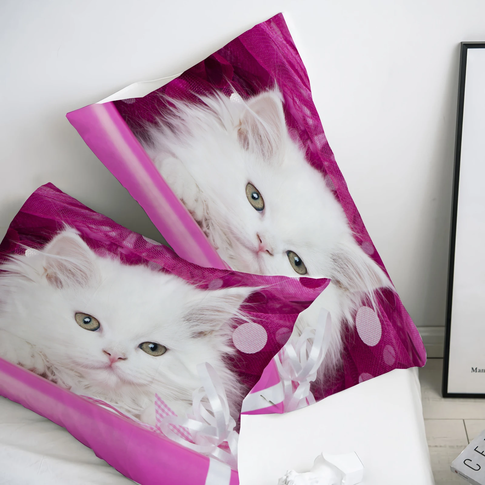 Комплект постельного белья с изображением милого белого кота для девушек и женщин, комфортный пододеяльник, мягкие покрывала для кровати, полноразмерное одеяло, роскошный подарок