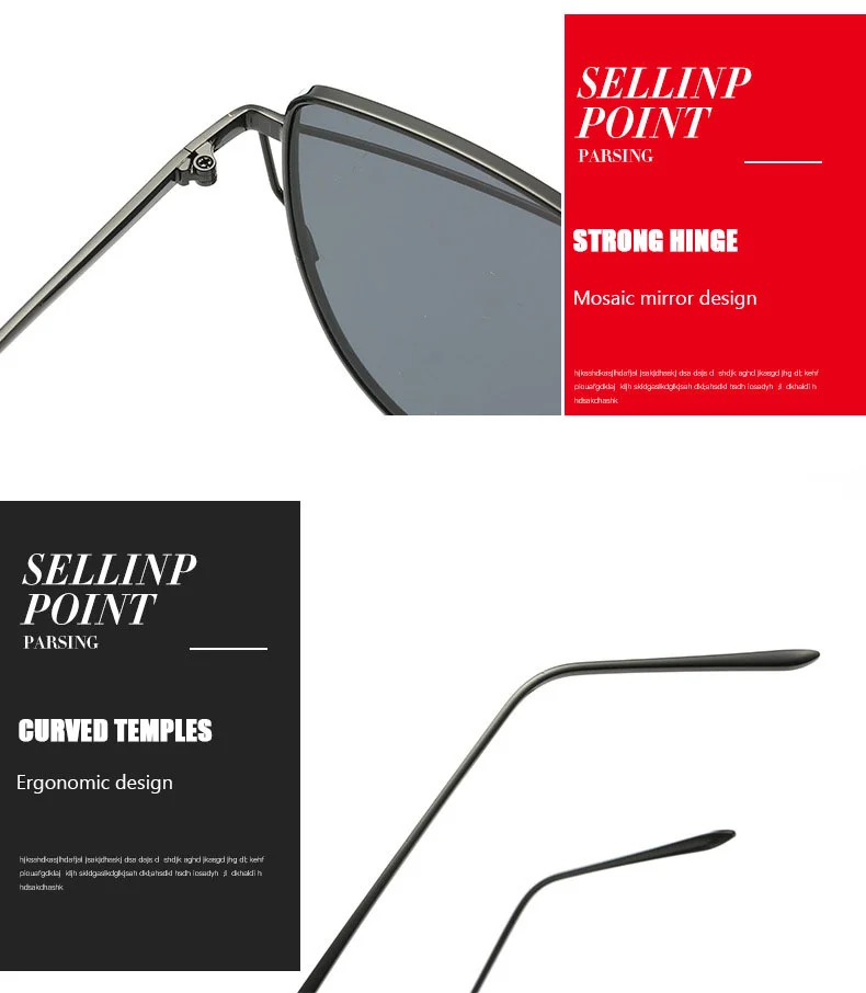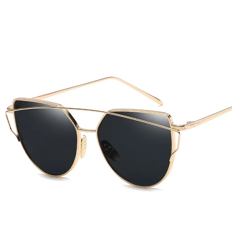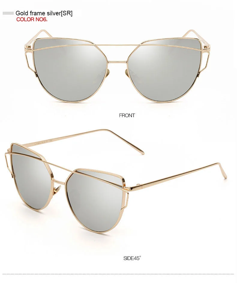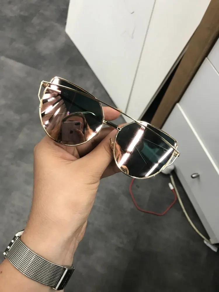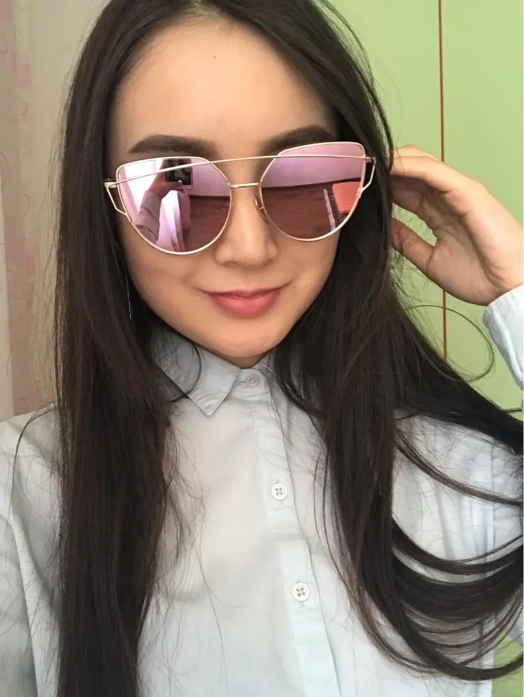 Солнцезащитные очки кошачий глаз UV400 женские, роскошные брендовые дизайнерские винтажные солнечные очки с зеркальными линзами, в металлической оправе из розового золота