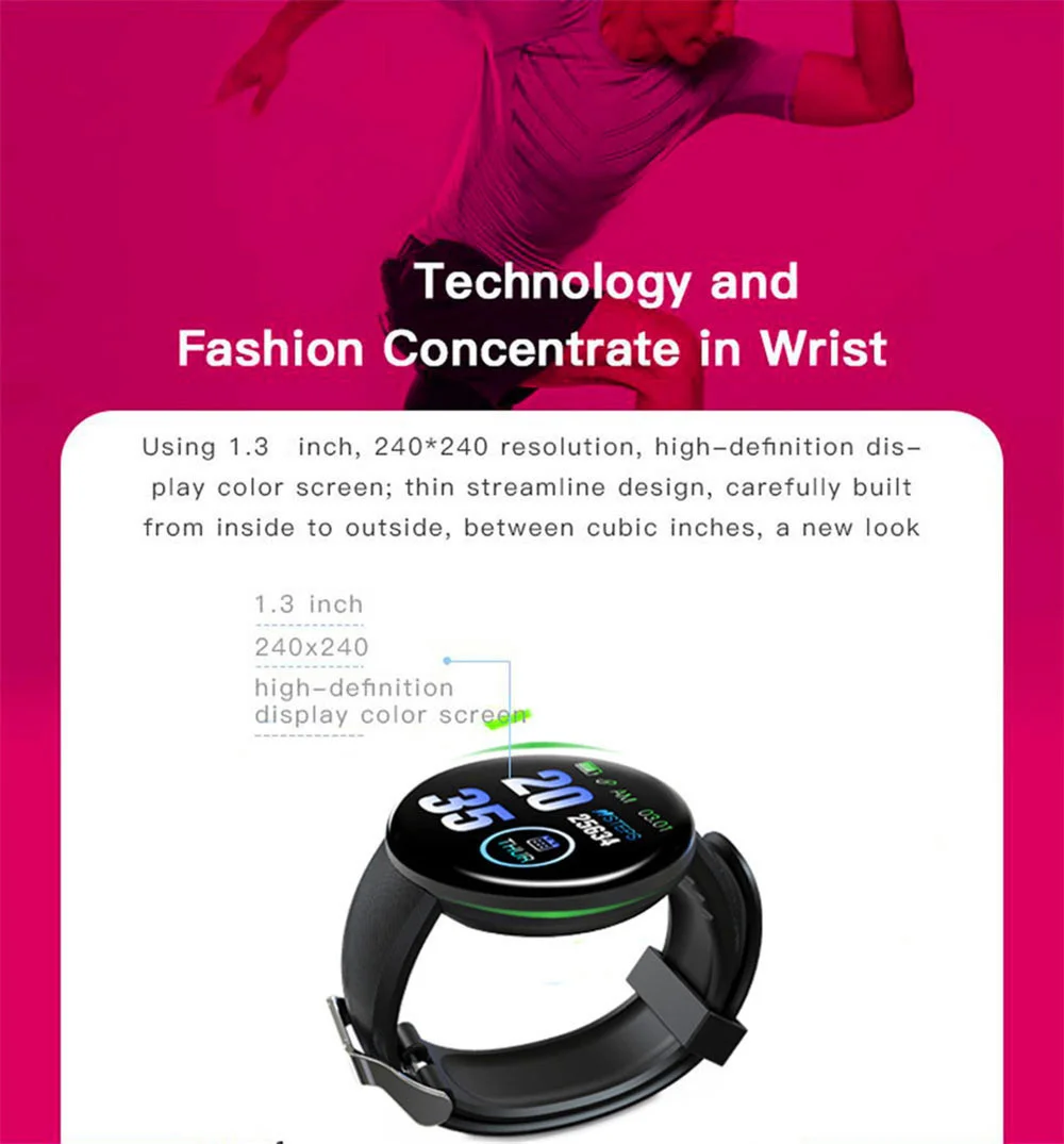 Спортивные Смарт-часы D18 для мужчин и женщин, водонепроницаемые ум...