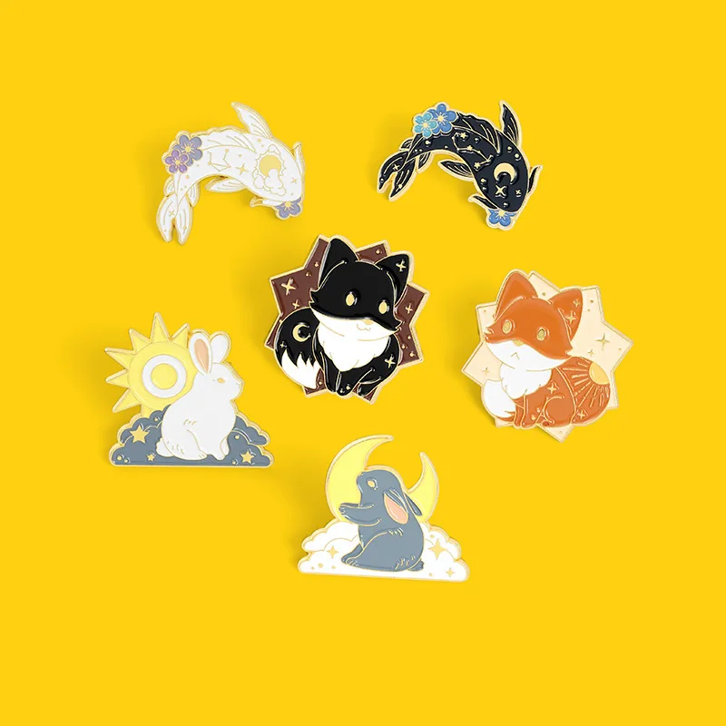Солнце и луна пара животных эмалевые заколки под заказ лиса кролик ...