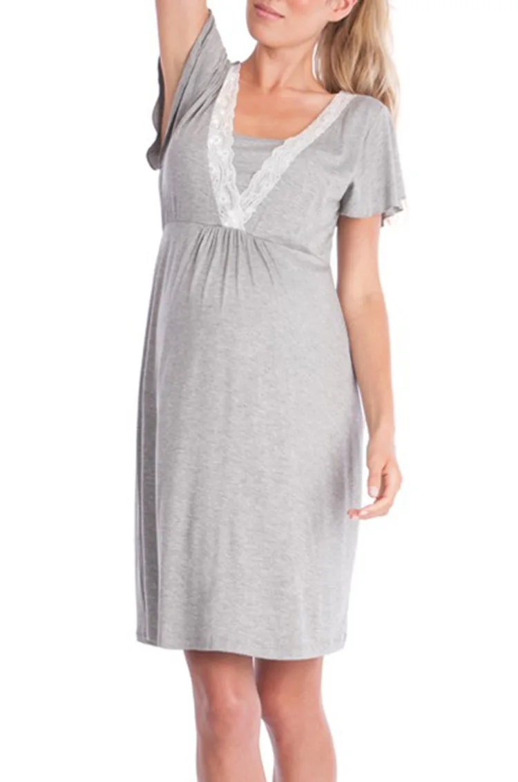 Ночная рубашка для беременных и кормящих элегантная кружевная Пижам...