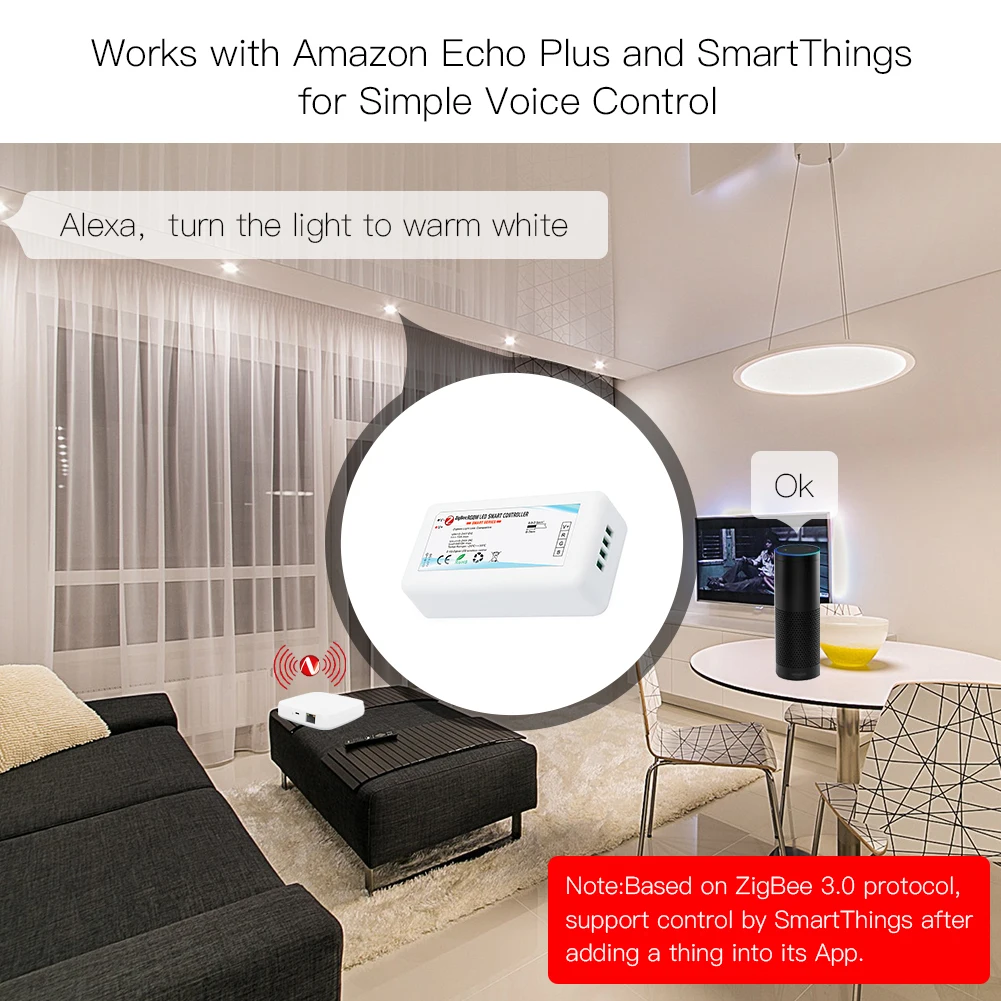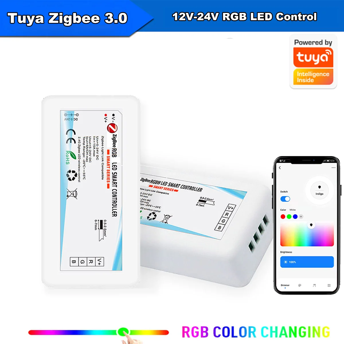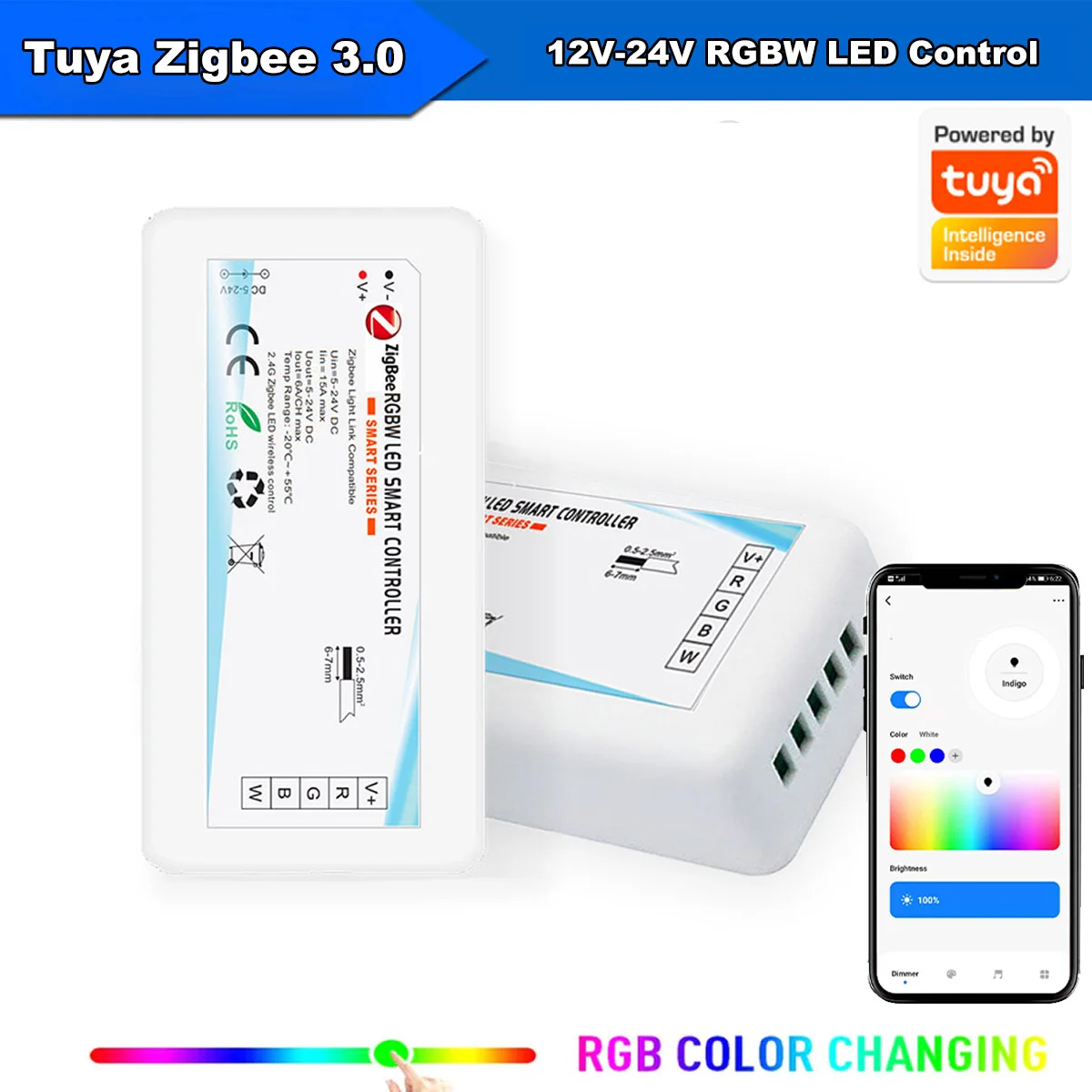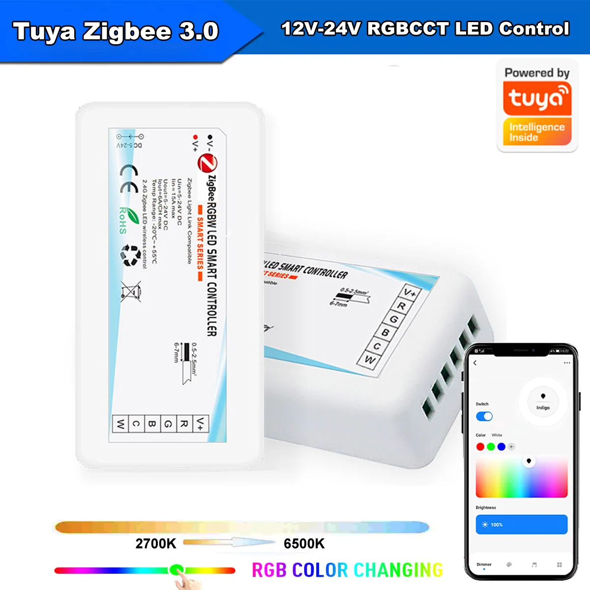 Контроллер светодиодной ленты TUYA Zigbee 3,0, 12 В, 24 В, 15 А, RGBW, RGBWW, RGB +, CCT, RGB, контроллер диммера для Alexa Smartthings Hu * e