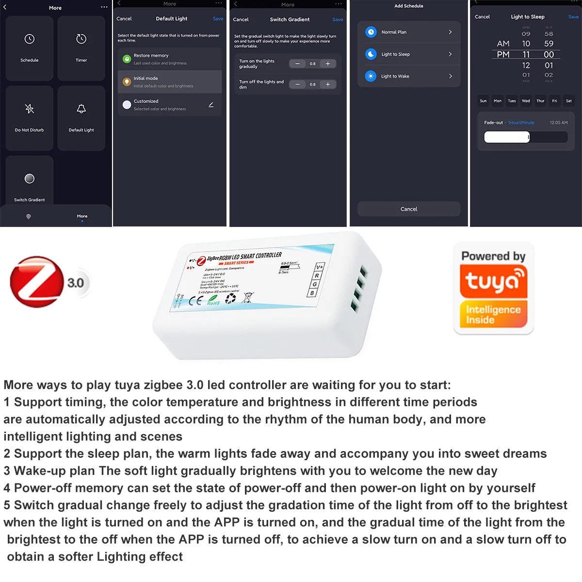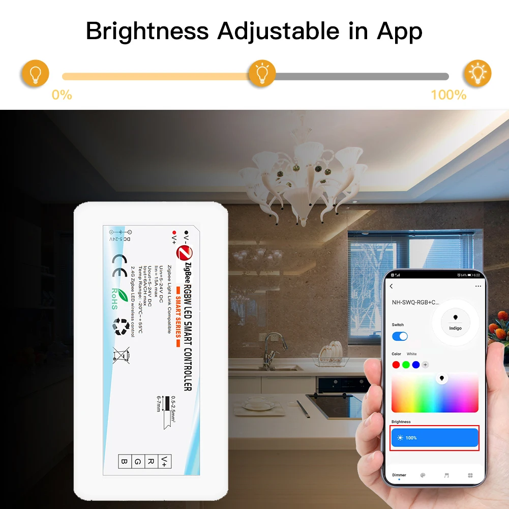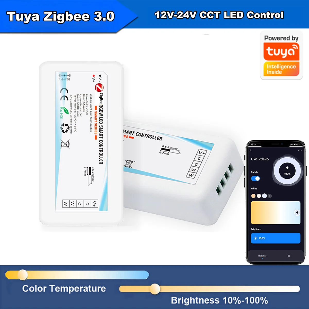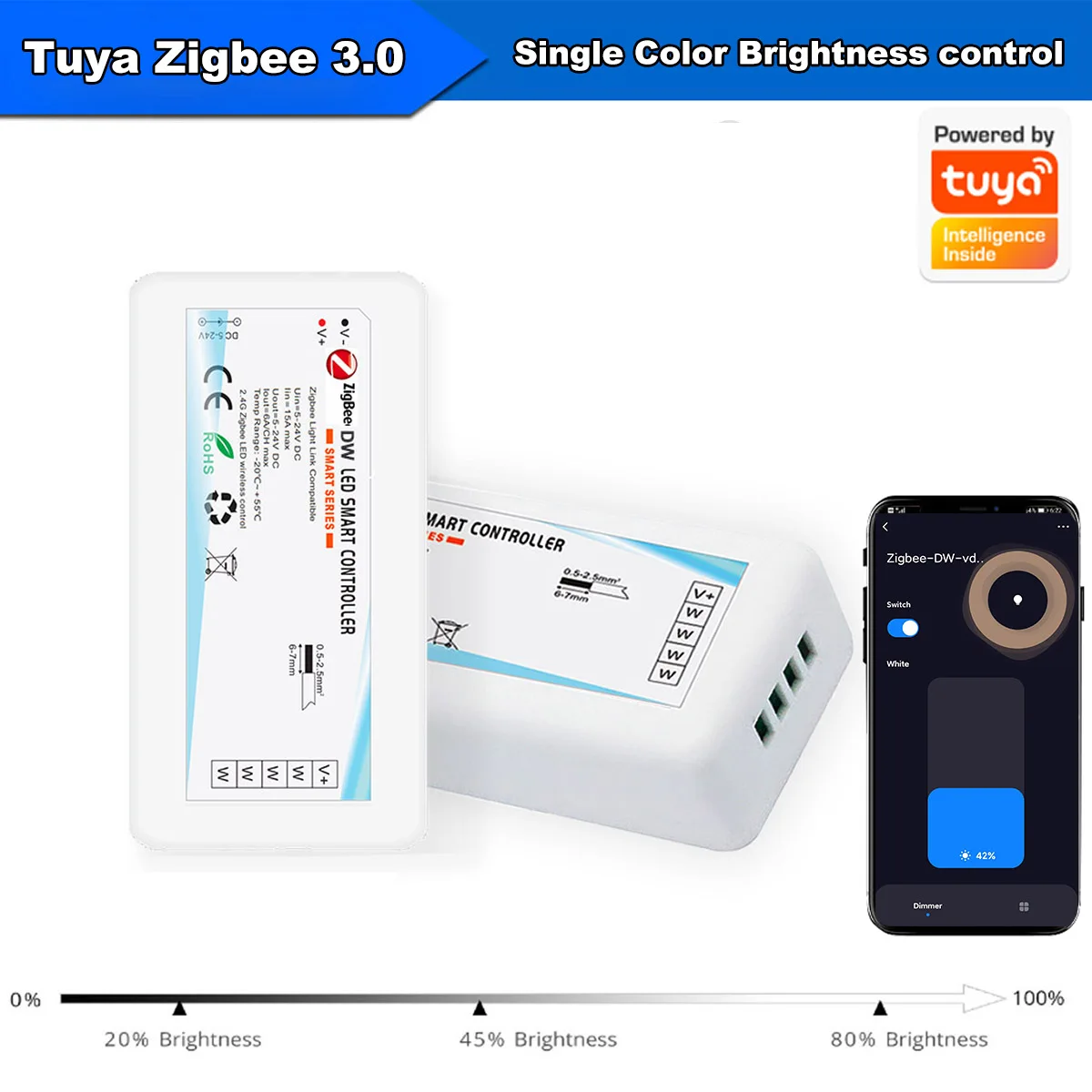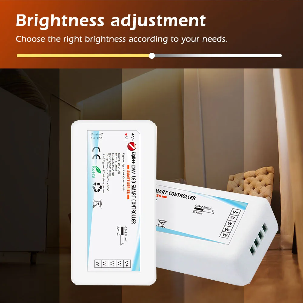 Контроллер светодиодной ленты TUYA Zigbee 3,0, 12 В, 24 В, 15 А, RGBW, RGBWW, RGB +, CCT, RGB, контроллер диммера для Alexa Smartthings Hu * e