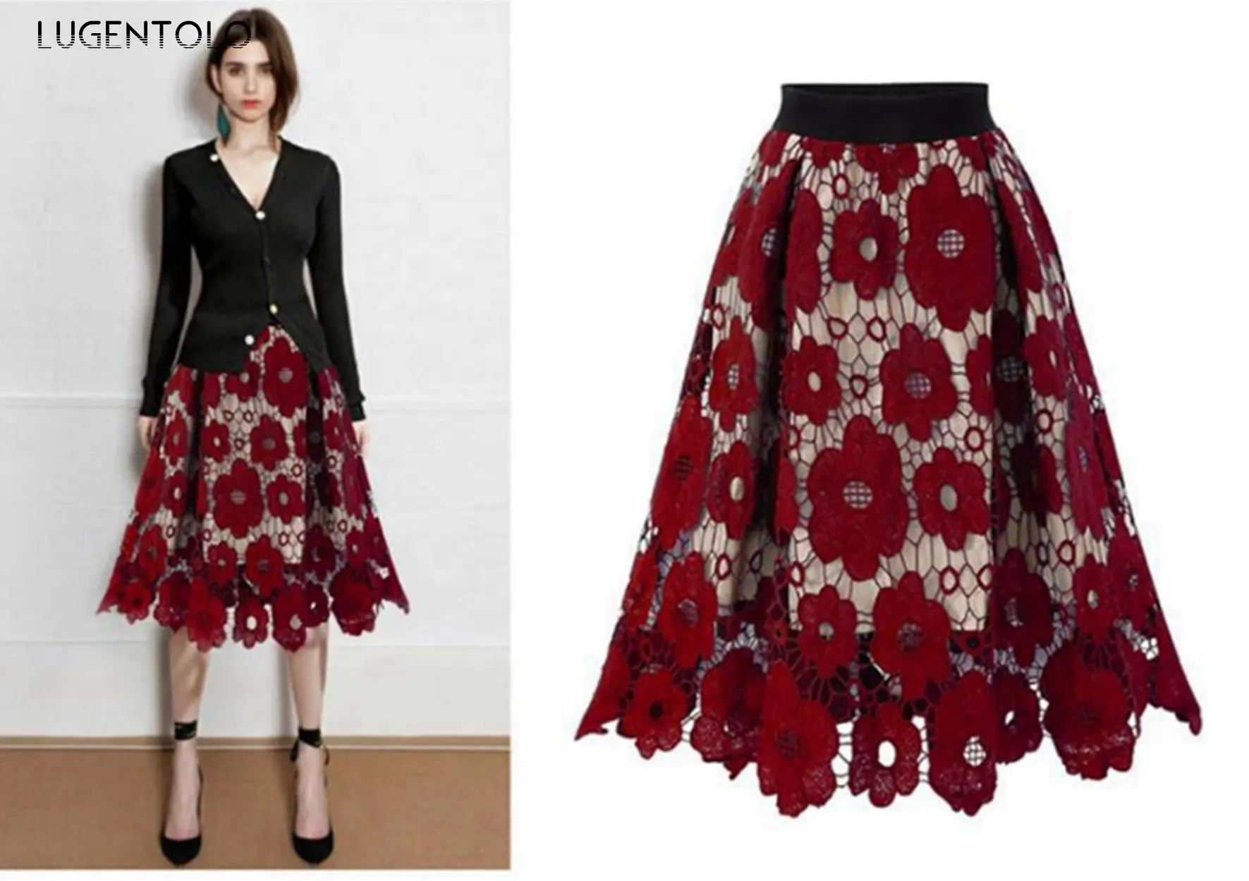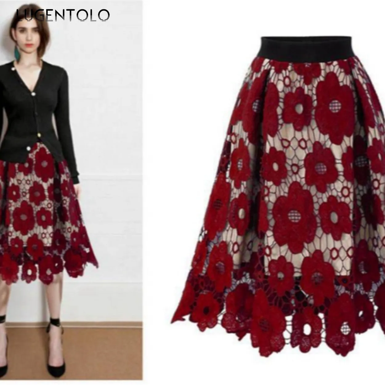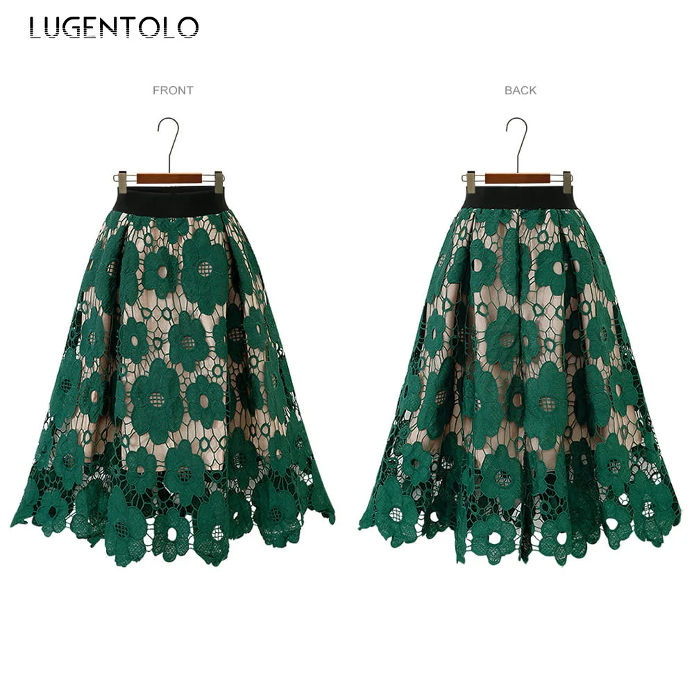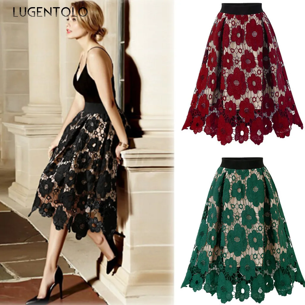 Юбка женская кружевная однотонная, элегантная тонкая повседневвечерние вечерняя юбка с широкой юбкой, милый стиль ампир, большие размеры, на весну