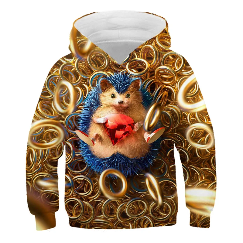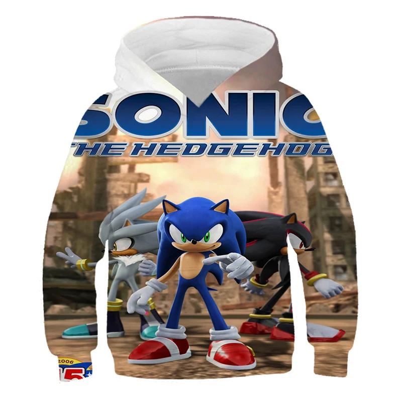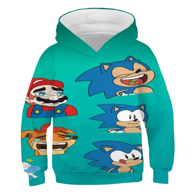 Детский 3D свитшот с длинным рукавом Sonic, одежда для маленьких мальчиков, стильный мультяшный свитшот для девочек, топы