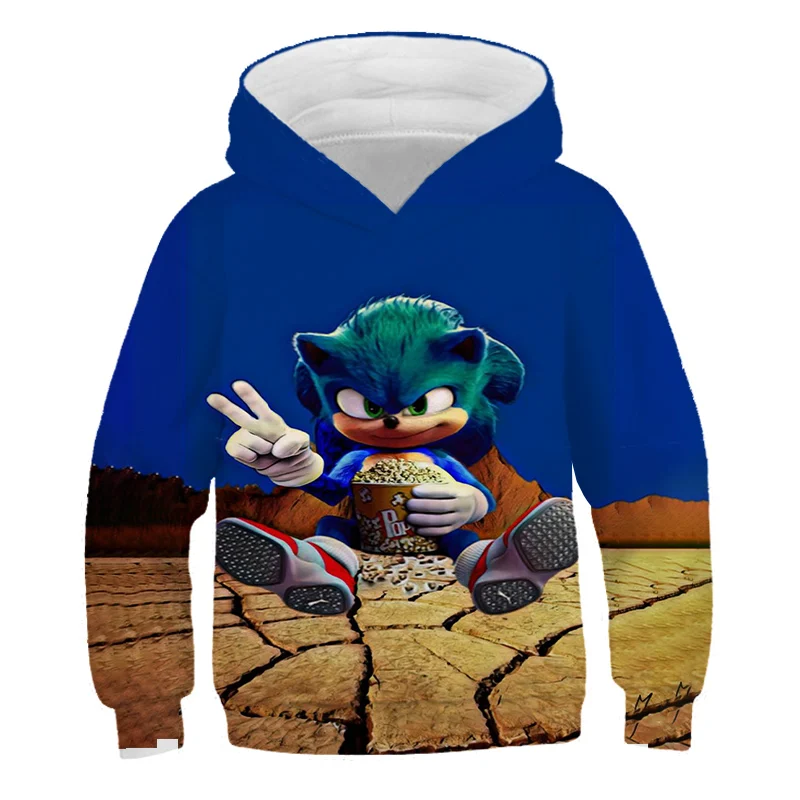 Детская одежда, модные синие толстовки с капюшоном Sonic, толстовка...