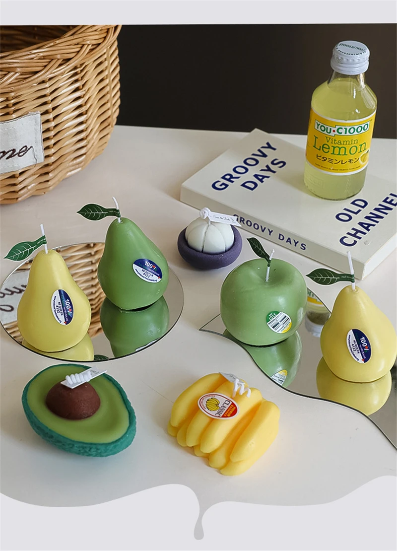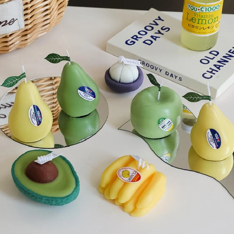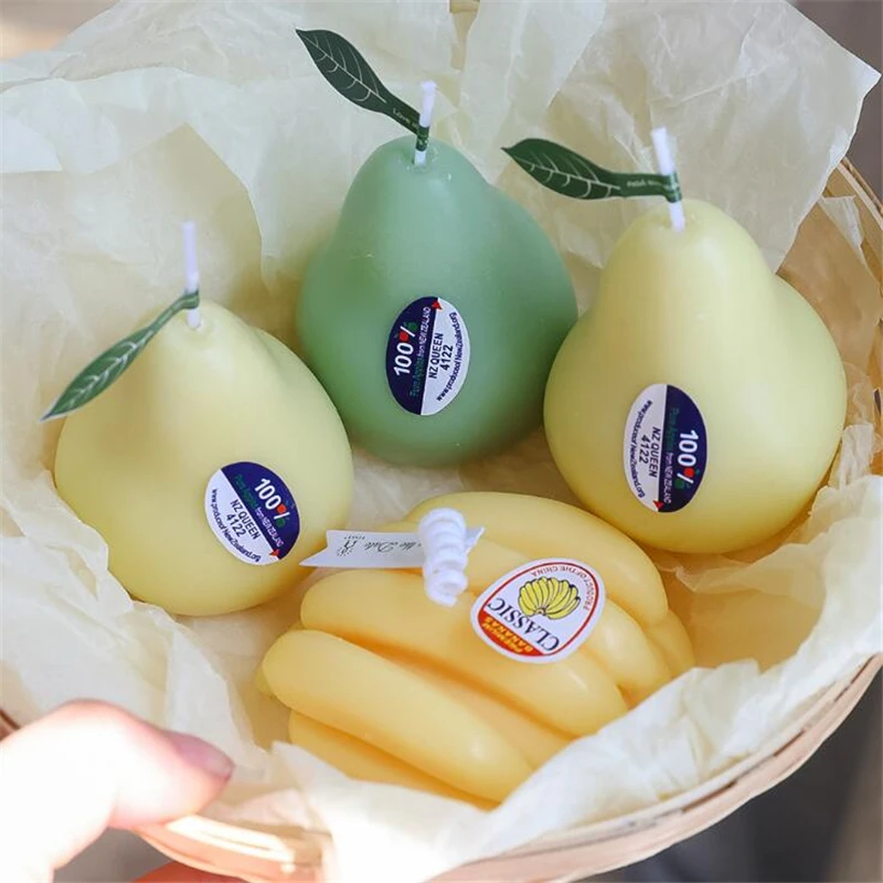 Ароматические свечи ручной работы, 1 шт., оригинальные украшения для дома в форме клубники, лимона, яблока, реквизит для фотографий, Свеча в подарочной коробке