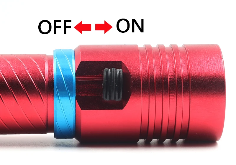 Переключатель: вкл/выкл (магнитный переключатель)Интегрированная прохладная поверхность на головке лампы обеспечивает низкое тепло, несмотря на высокую производительностьРегулируемая интенсивность света под водойПостоянное изменение интенсивности света, слегка перемещая переключательГерметичный водонепроницаемый дизайнПрочные уплотнительные кольца с двойной смазкой обеспечивают двойную безопасность под водой3-оптически настроенный зеркальный отражатель для оптимального освещенияПитание: 1x3,7 В 18650/1x26650 батареиВес: 230 г